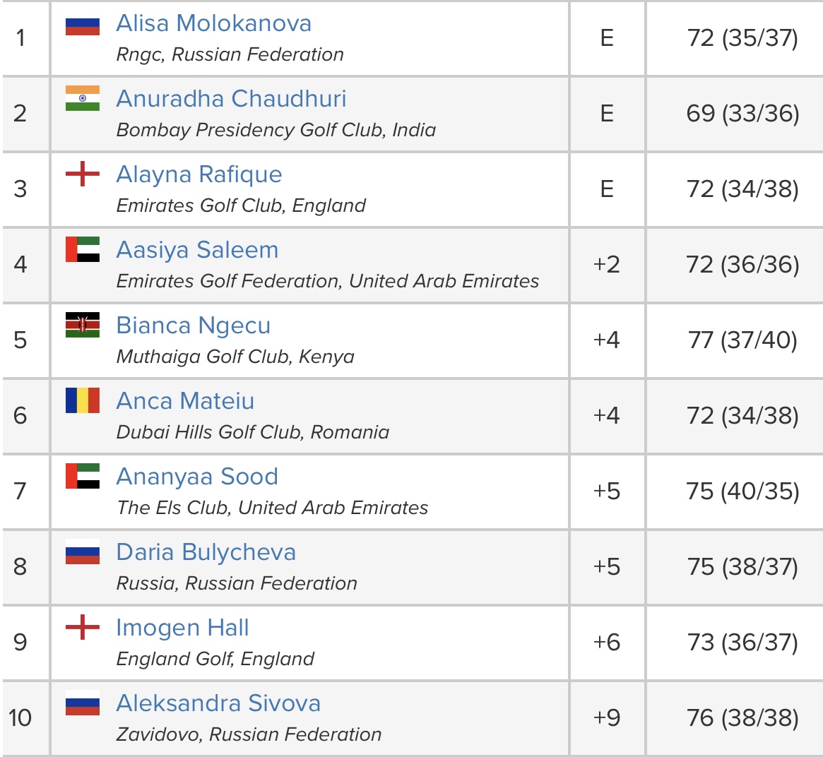 Рас-эль-Хайме завршился второй раунд турнира серии Tommy Fleetwood International Pathway Series Presented by DP World. Алиса Молоканова, спортсменка Московской области, делит лидерство с результатом пар (72+72) с двумя другими гольфистками.