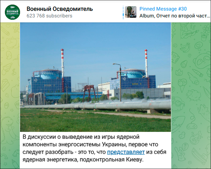 Возможность "вывода из игры" украинских АЭС обсуждается не первый год. Чисто военная выгода от таких ударов очевидна, но всё упиралось в тяжёлые политические последствия. Скриншот: ТГ-канал "Военный осведомитель"