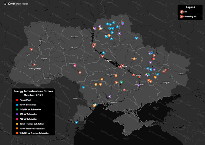 Только за минувший октябрь Россия нанесла удары по 71 объекту энергетики Украины, включая 17 ТЭЦ, ТЭС и ГЭС. Такие удары продолжаются с осени 2022 года, но враг до сих пор имеет электричество, связь и интернет. Источник: ТГ-канал "Военный осведомитель"