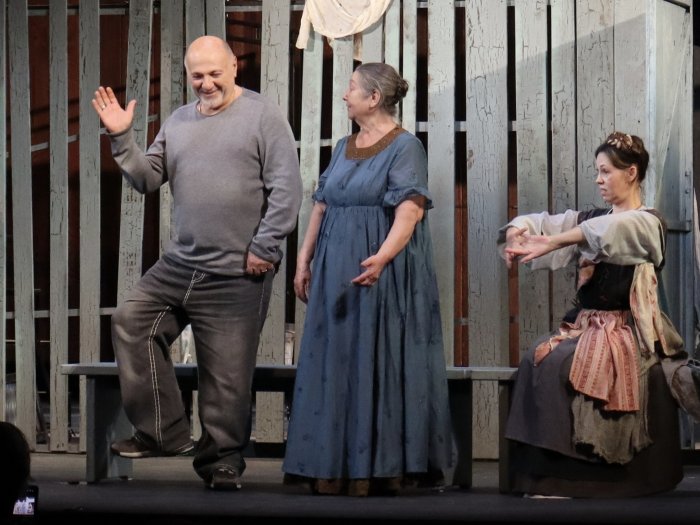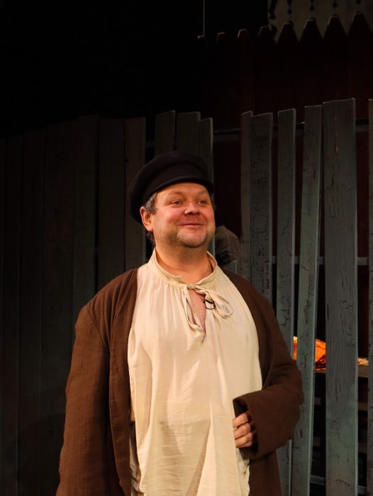 Прямиком из зала журналисты оказались на Основной сцене, где сейчас идут финальные репетиции «Женитьбы Бальзаминова». Режиссёр спектакля – Сергей Газаров.