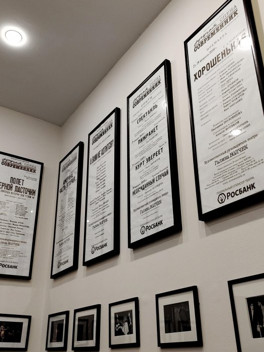 В рамках пресс-тура журналистов проводили и в административное здание, чтобы познакомить с лёгкими «Современника» – основой и стабильностью, благодаря которым он дышит с каждым годом чище и сильнее. Группа побывала в костюмерной, услышала историю некоторых реквизитов, заглянула на репетицию спектакля, работа над которым только началась, и изучила табло с расписанием театра. Отдельное внимание было уделено доске благодарностей с распечатанными материалами СМИ, среди них и несколько статей «Театрала».