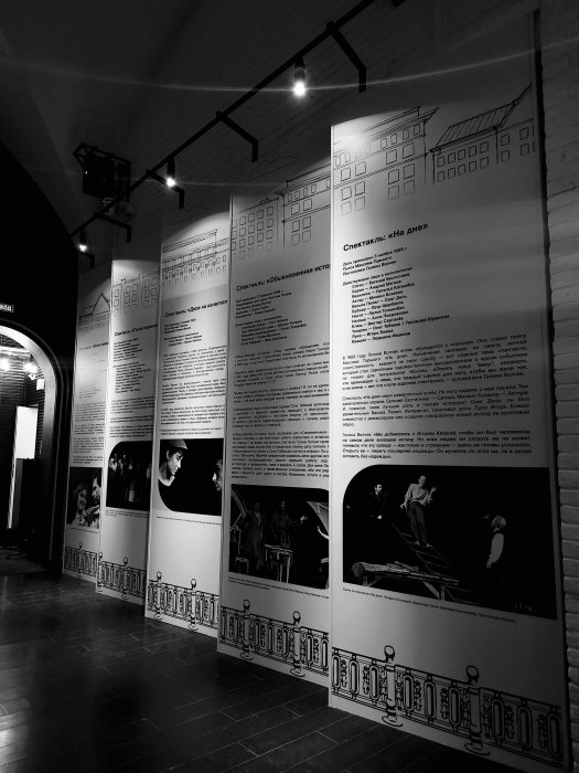 «Почему это пространство экспериментальное? Зритель находится в непосредственной близости от сцены, невозможно недоиграть или переиграть, ты живёшь достоверно. В двухтысячных годах Другая сцена открылась спектаклем по рассказу Николая Гоголя «Шинель», поставил его Валерий Фокин, а в главной роли была задействована Марина Неёлова. На противоположной стене можно увидеть её портрет в образе трогательного, трепетного Башмачкина», – рассказала Елена Фастовская.