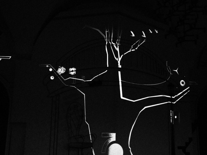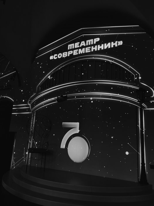Среди исчезающих веточек появляются и пропадают семь анимированных фигур основателей театра, легендарных артистов, кадры знаковых спектаклей, эскизы постановок, программки. Печатная машинка с вылетающими листами, будто в полёте мысли творец исписал их все. Герои спектакля «Двое на качелях» в вечном споре о любви. Марина Неёлова и Валентин Гафт в «Трёх сёстрах», Галина Волчек, живущая в параллельных мирах в постановке «Кто боится Вирджинии Вульф?». Даже самолёт, чьи крылья уносят «Современник» в гастрольный международный путь, чтобы с бурными овациями труппу встретили на Кубе, в Великобритании, в ГДР и других странах. Финальным аккордом экспозиции становится проявляющийся лик здания, сформированный из множества имён. Имён людей, служивших театру в разные годы и продолжающих жить для него.