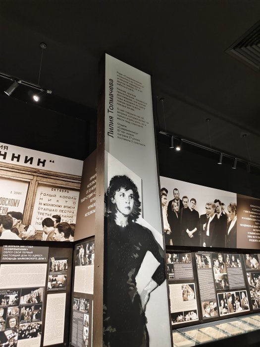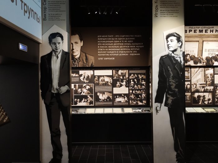 Также в течение путешествия по «Современнику» с современниками Елена Фастовская провела экскурсию в музее театра. Экспозиция на втором этаже разделена пополам, как и кулуары в фойе. Левая часть посвящена истории «Современника» времён Олега Ефремова, а правая рассказывает о театре с начала 1970-х годов до наших дней. Оба блока начинаются с цитат двух художественных руководителей: