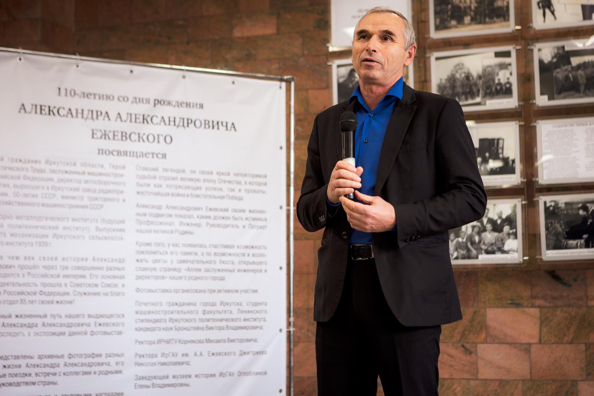 - В 2014 году Иркутский аграрный университет был назван в честь Александра Ежевского. Я лично был знаком с Александром Александровичем по долгу службы. Благодаря этому замечательному человеку многое сделано в нашем вузе. При его поддержке оборудованы новые аудитории на инженерном факультете.