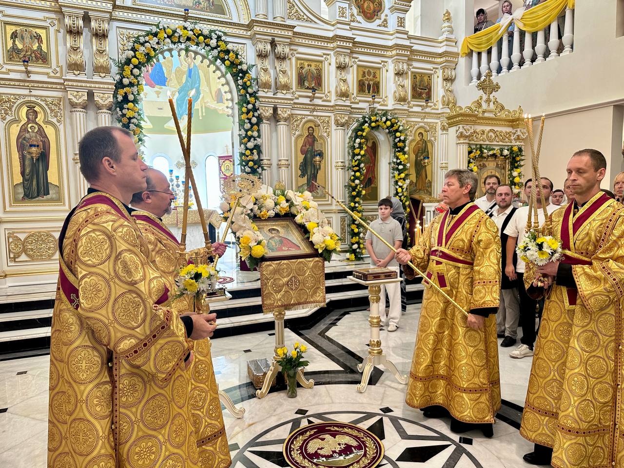 В завершение Божественной литургии на середине храма было совершено славление перед иконой святого апостола Филиппа.