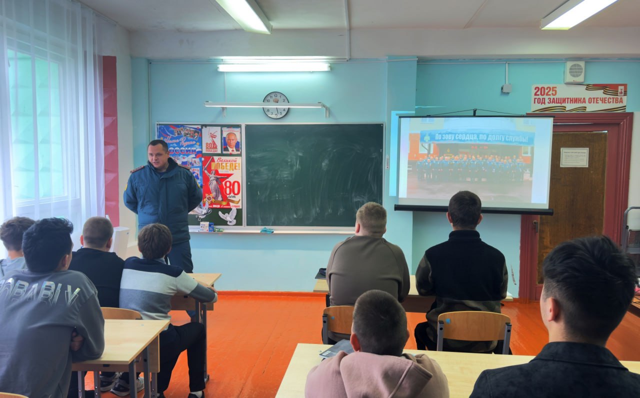 Также инспекторы познакомили выпускников школ с профессиями спасателя и пожарного.