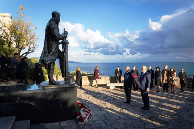 Во время церемонии открытия статуи княжеской четой и президентом Португалии четверо студентов исполнили небольшую пьесу. В княжеском дворце пояснили, что пьеса чутко отражает исторические и научные связи, объединяющие испанских и португальских монархов. Князь Альбер II и президент Ребелу де Соуза возложили венки к статуе князя Альбера I «в знак уважения к глубокой дружбе, объединявшей двух монархов, и их общей преданности океану».