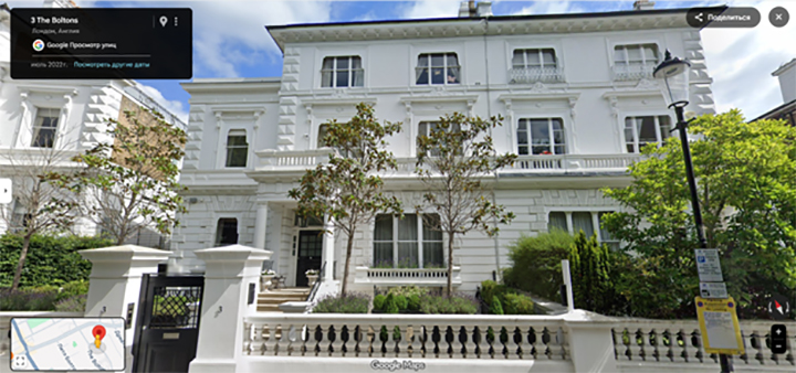 Тот самый особняк по улице The Boltons в 15 минутах ходьбы от Букингемского дворца. Скромное жильё скромного сенатора! Скриншот страницы сайта google.ru/maps