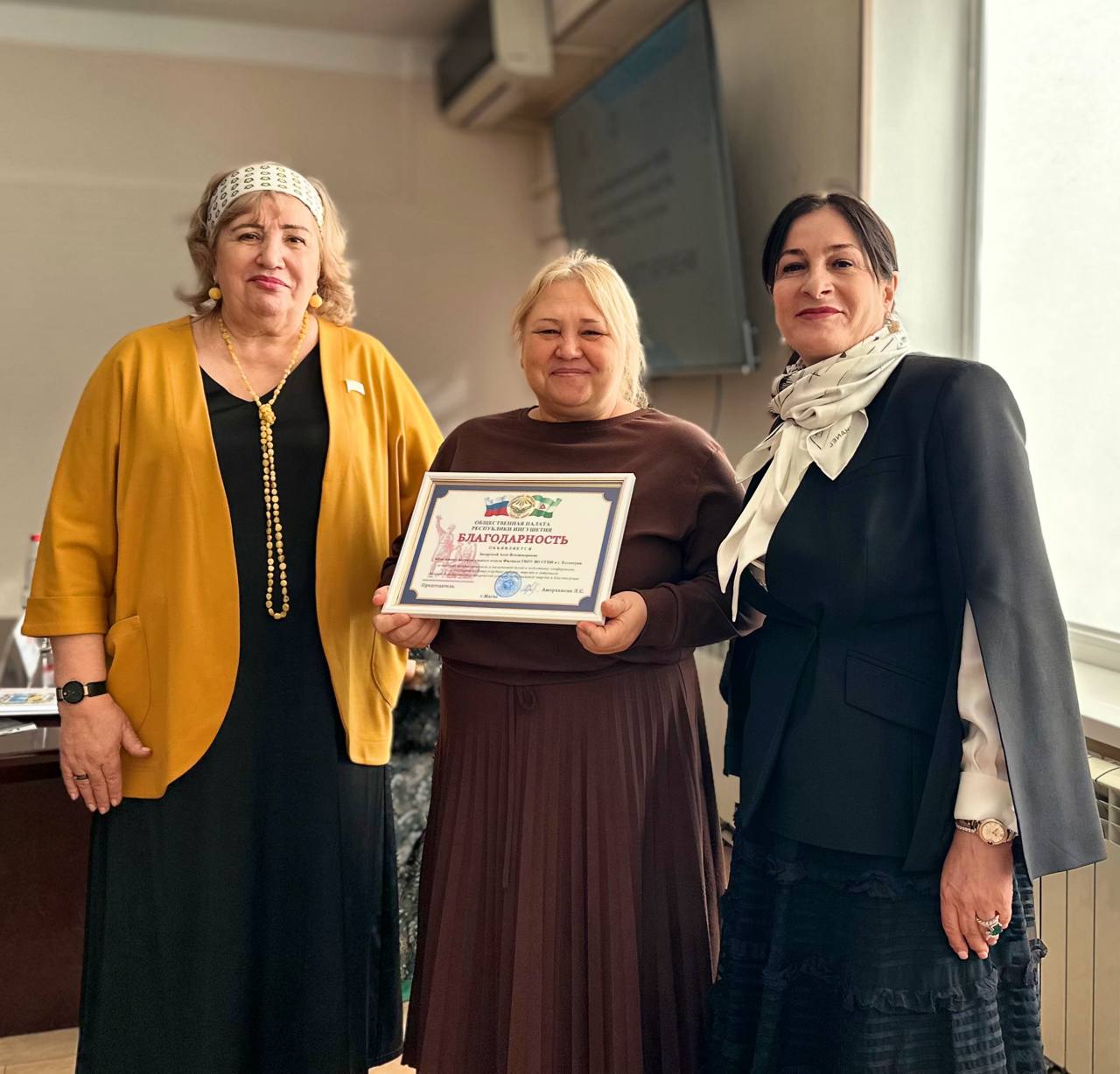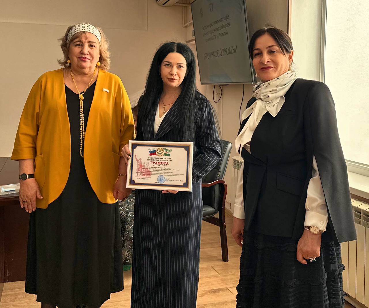 💛В начале мероприятия Л.С. Амерханова вручила медаль Общественной палаты Республики Ингушетия «За активную общественную деятельность» и почетную грамоту за профессионализм, мудрость и активную общественную деятельность директору Филиала СГПИ в г. Ессентуки М.Ю. Чотчаевой.