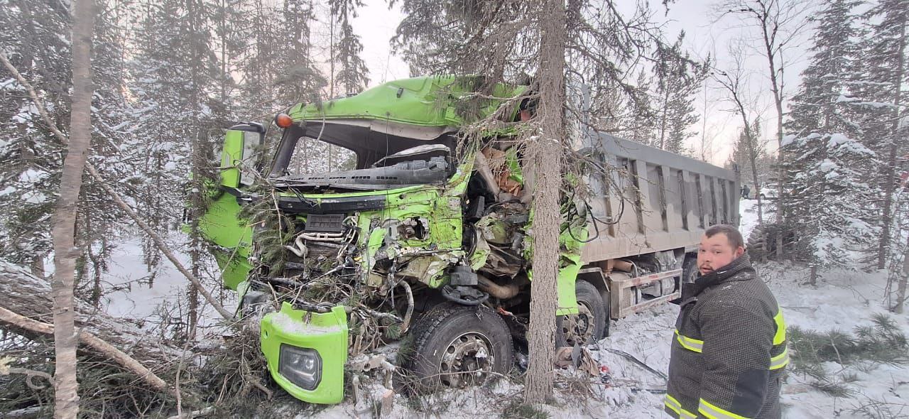 В Красноярском крае на трассе в Северо-Енисейском районе столкнулись два большегруза. Один водитель погиб, второй попал в больницу.