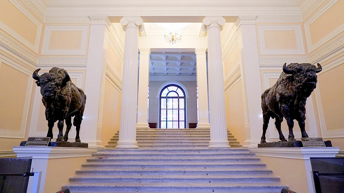 В Санкт-Петербурге завершили реставрацию парадного вестибюля в доме Пашкова. В историческом здании на Литейном проспекте восстановили две гипсовые скульптуры зубров в натуральную величину. Об этом сообщили в Администрации города.