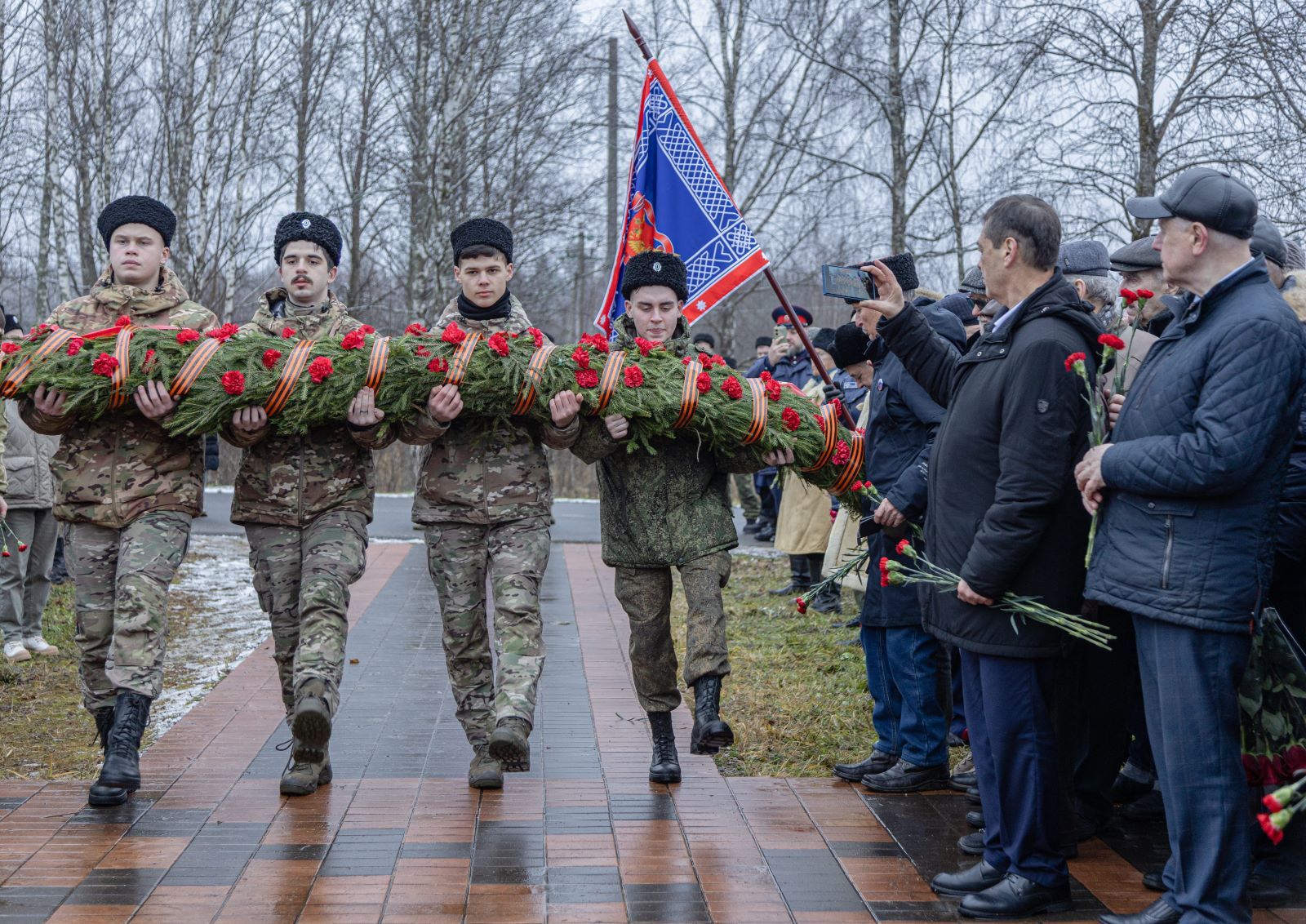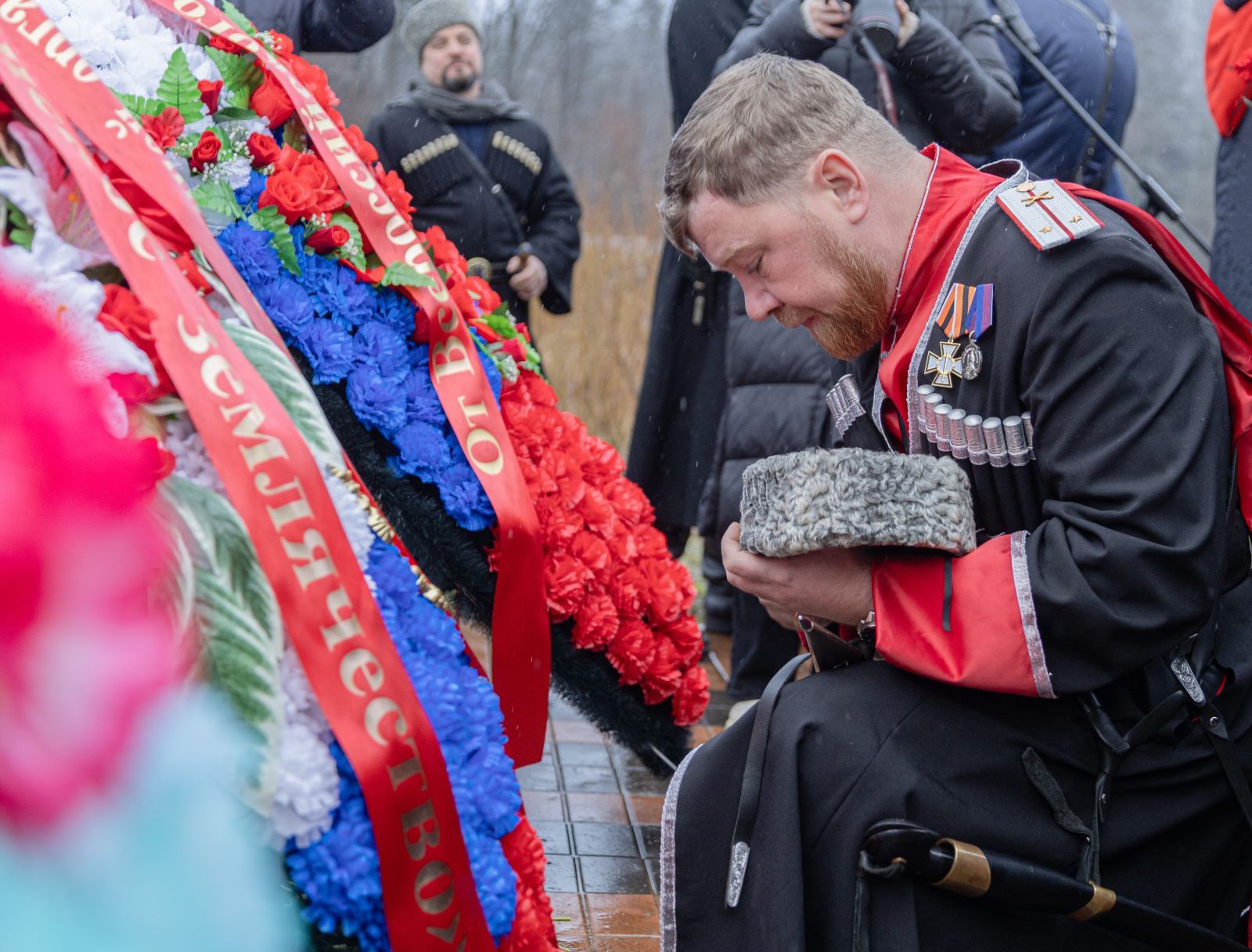 Начальник Управления по работе с казачеством Департамента национальной политики и межрегиональных связей города Москвы ЮрийБерезецкий огласил приветствие руководителя Департамента Виталия Сучкова: «Сегодня мы низко склоняем головы и свято чтим память о тех, кто пал в кровопролитных боях на этом рубеже и других районах Подмосковья в далеком 1941 году. Мы выражаем огромную благодарность и отдаем дань глубокого уважения всем, кто в суровой, тяжелейшей битве отстоял нашу столицу. Боевые традиции своих отцов и дедов, заложенные в годы Великой Отечественной войны, сегодня продолжают представители всех войсковых казачьих обществ России, с мужеством и честью выполняя боевые задачи в зоне специальной военной операции».