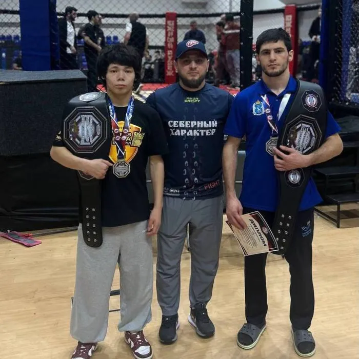 Спортсменов тренируют Шамиль Дайитбегов, Мурат Гитинов, Расул Зиявдинов и Максим Няч в центре единоборств «Северный характер».