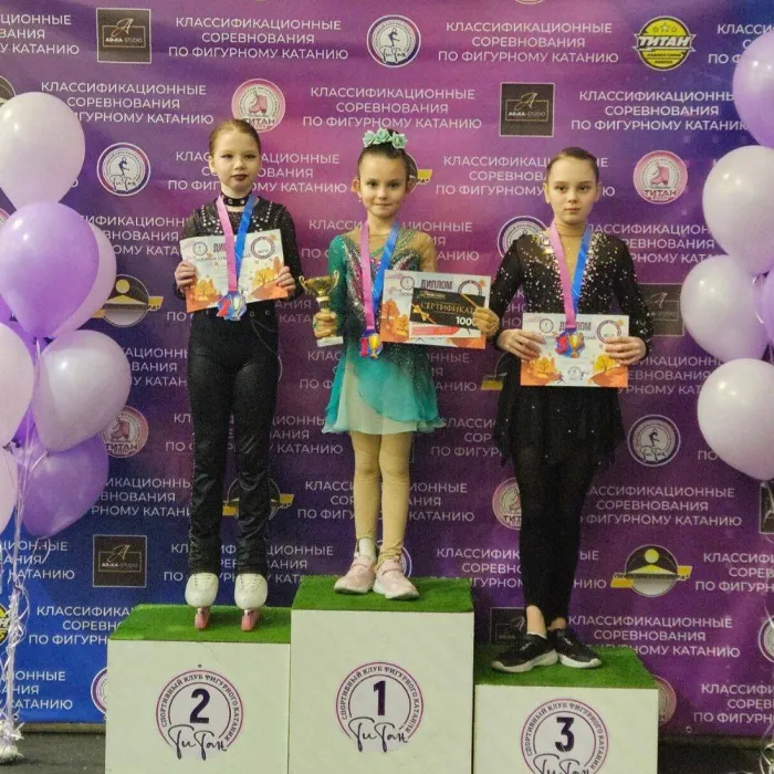 Спортсменка заняла первое место в программе «Юный фигурист» среди девочек в группе D.