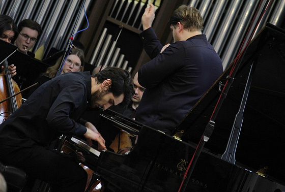 Здесь было столько хорошей музыки, что перечислять программу даже нет смысла, её можно было только услышать и почувствовать — всем сердцем. На сцене были наши студенты, выпускники и гости: Дмитрий Бородаев (гитара) и Абисал Гергиев (фортепиано). Гимн Академии (в обработке В.В. Калицкого и О.В. Голубевой) на этот раз пели все вместе: наши вокалисты, наши артисты — на РЖЯ, в сопровождении удивительных звуков органа.