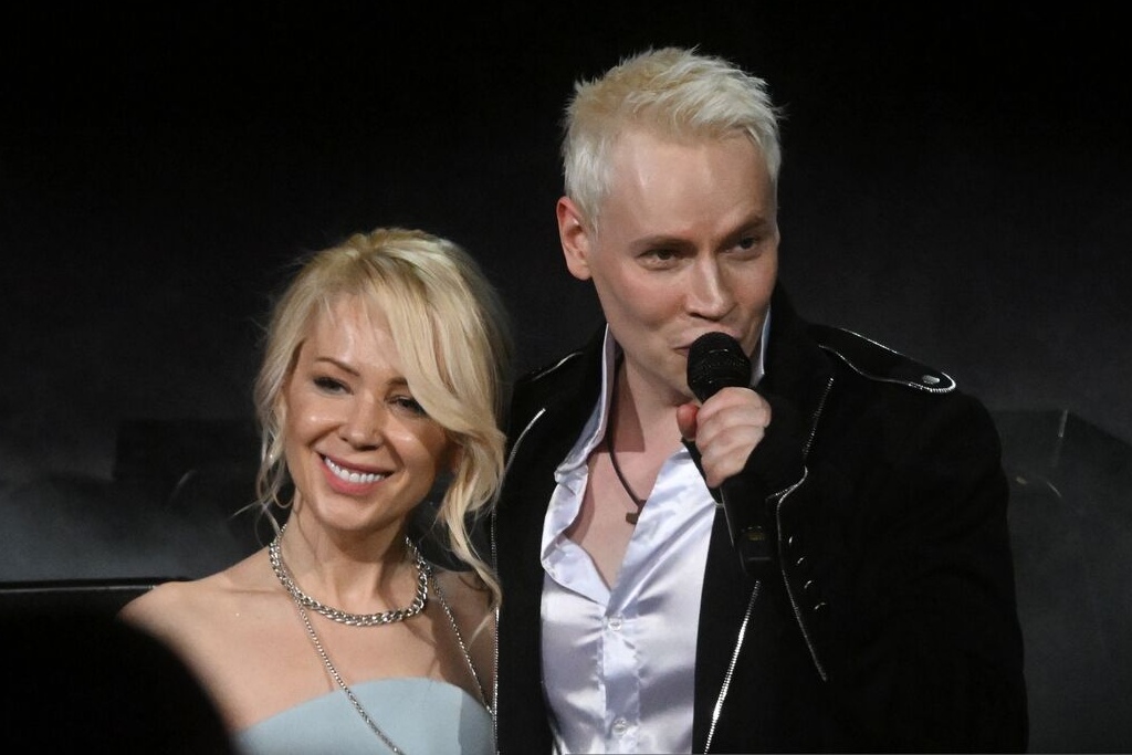 После откровений артиста на сцене появилась его жена — глава Лиги безопасного интернета Екатерина Мизулина. Блондинка поздравила любимого с днём рождения, после чего пара станцевала под ставшую уже «их песню» «Ты моя». Закончив петь, артист заявил, что «на правах мужа» может поцеловать жену, что затем и сделал.