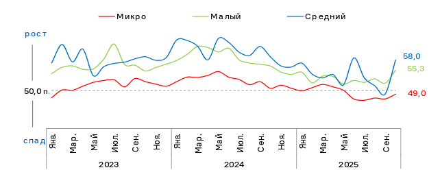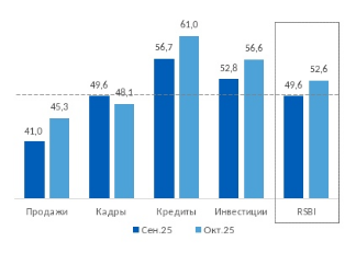 По данным октябрьского исследования настроений малого и среднего бизнеса, проводимого ПСБ совместно с Опорой России и НАФИ на ежемесячной основе, значение индекса RSBI выросло до 52,6 пункта, отражая оживление бизнес-активности на фоне сезонных факторов и приближения сроков изменения налоговой системы.