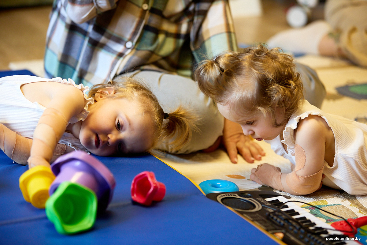 — После выписки месяца полтора мы просто отдыхали дома и периодически ездили к офтальмологу. Затем — первая госпитализация, снова обследование в Минске. Врачам не нравилось, что у девочек долго не проходил мышечный тонус: были напряжены ручки, ножки, все тело.