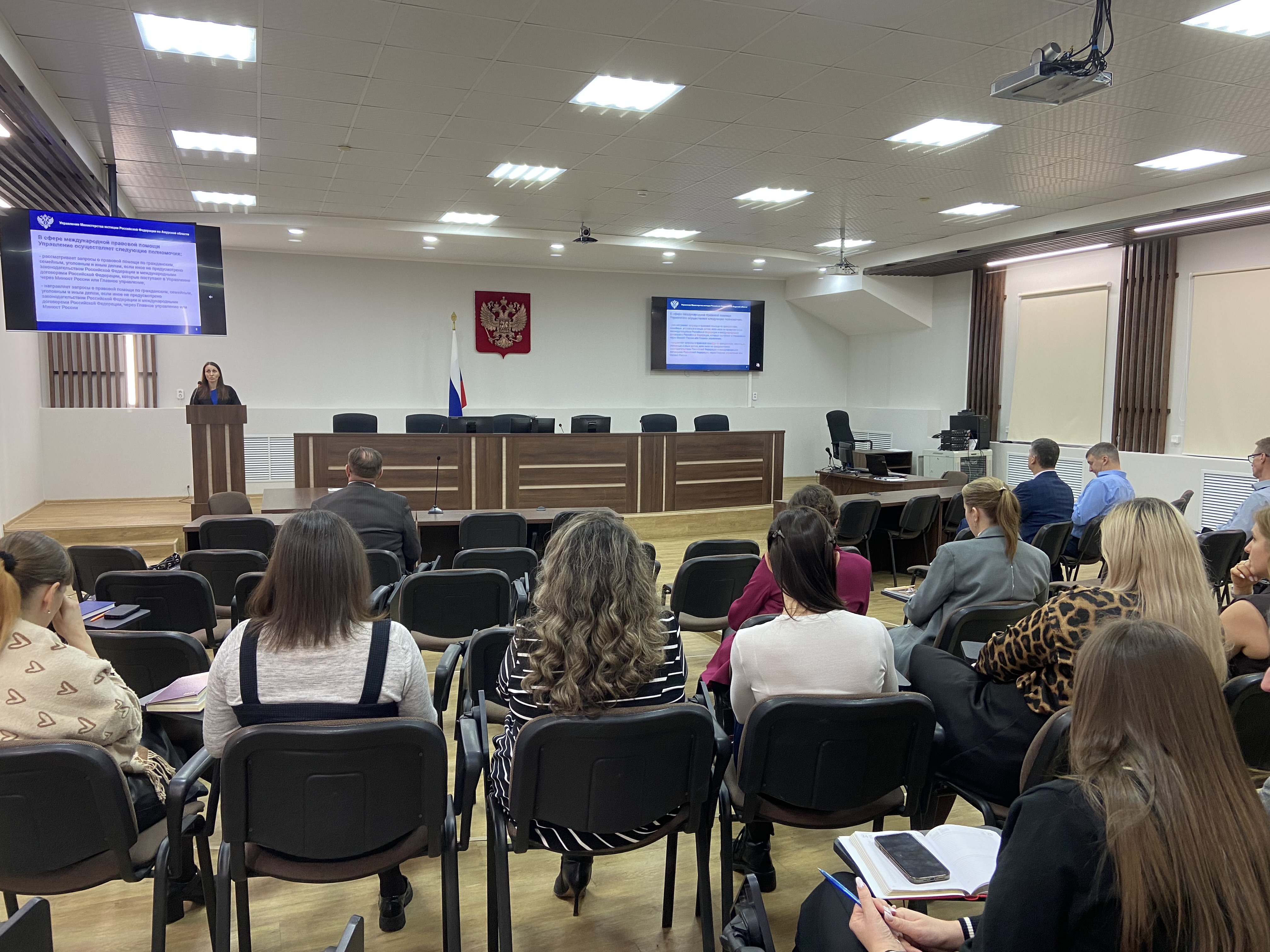 Управлением Минюста России по Амурской области 21 ноября 2025 года во взаимодействии с Амурским областным судом проведен обучающий семинар с судьями и помощниками судей Амурского областного суда по следующим темам: «Исполнение обязательств и реализация прав, вытекающих из международных договоров Российской Федерации о правовой помощи и правовых отношениях по гражданским, семейным и уголовным делам», «О деятельности Амурского областного филиала Дальневосточного регионального центра судебной экспертизы Минюста России и видах экспертиз, проводимых филиалом».