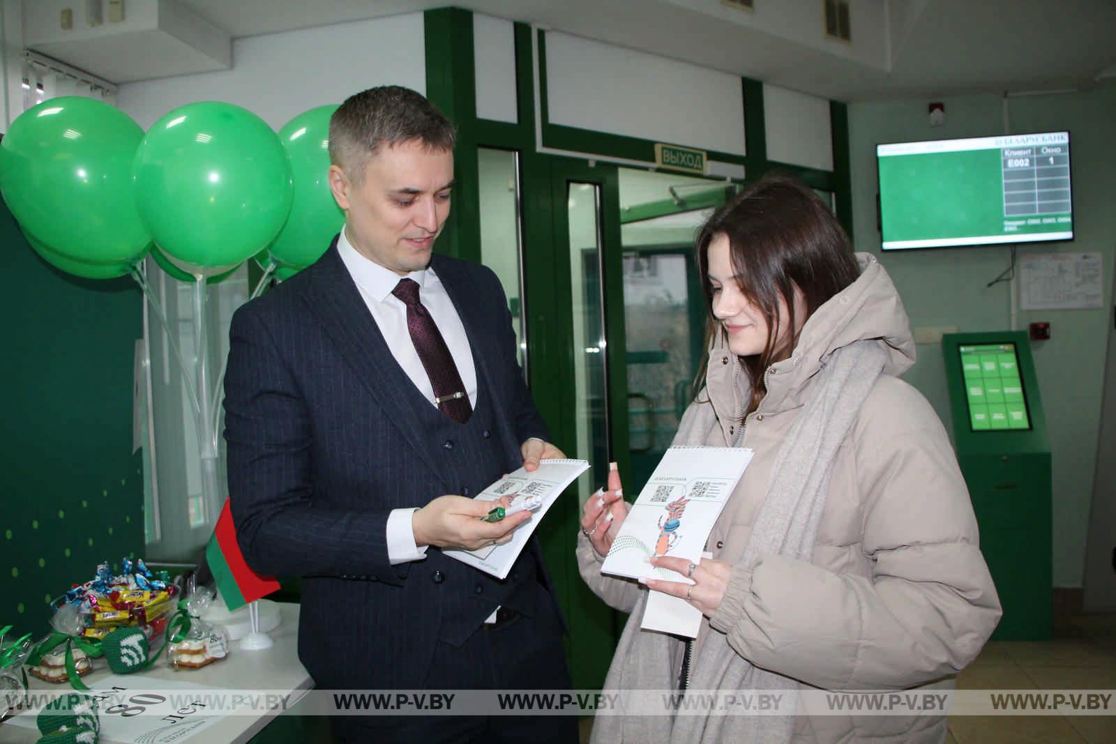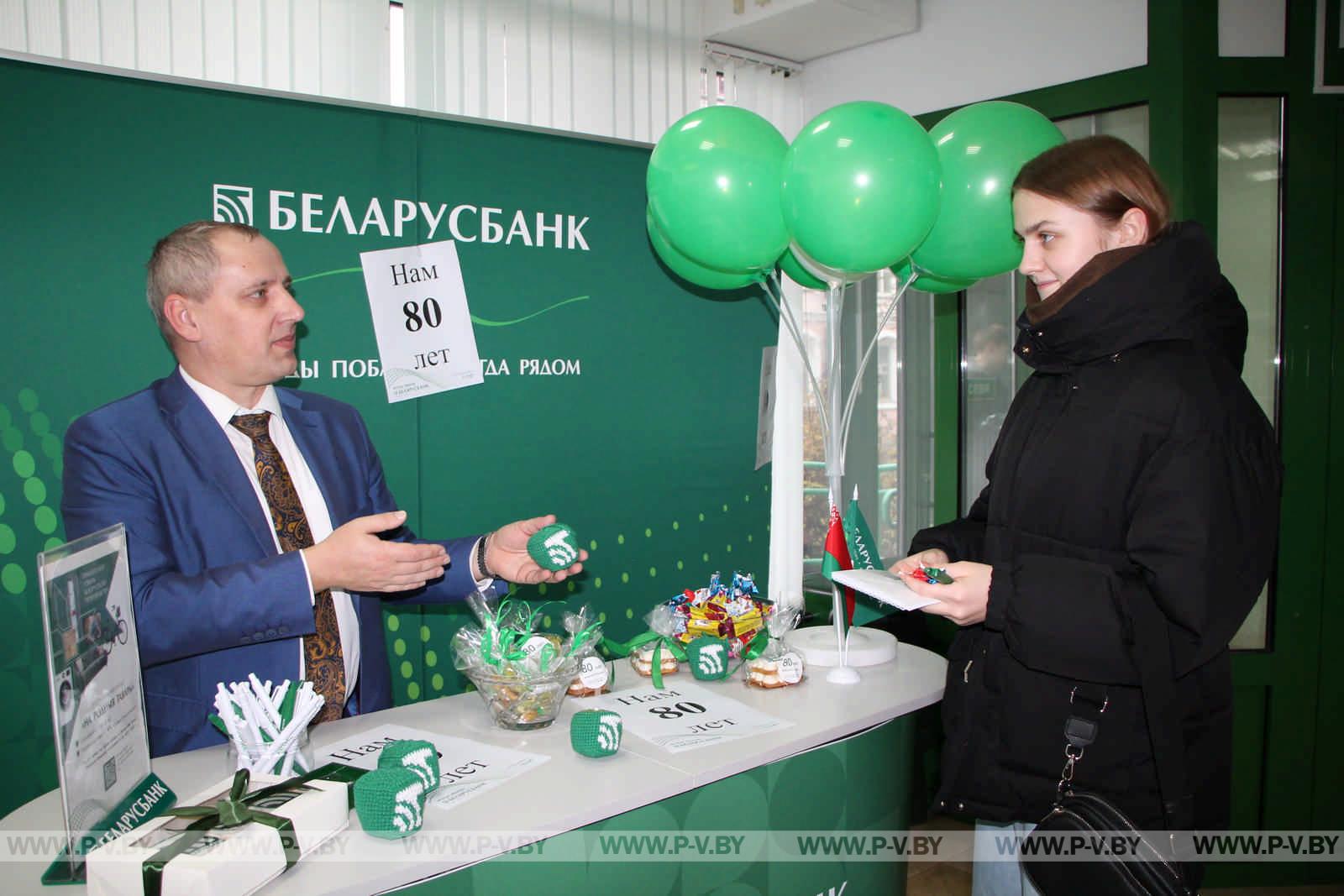 Отделение «Беларусбанка» на улице Ольховских отмечает свое 80-летие. Оно первым было открыто в нашем городе. С юбилеем коллектив и посетителей поздравили директор ЦБУ № 121 ОАО «АСБ Беларусбанк» Андрей Хлебус и его заместитель Александр Розумец.