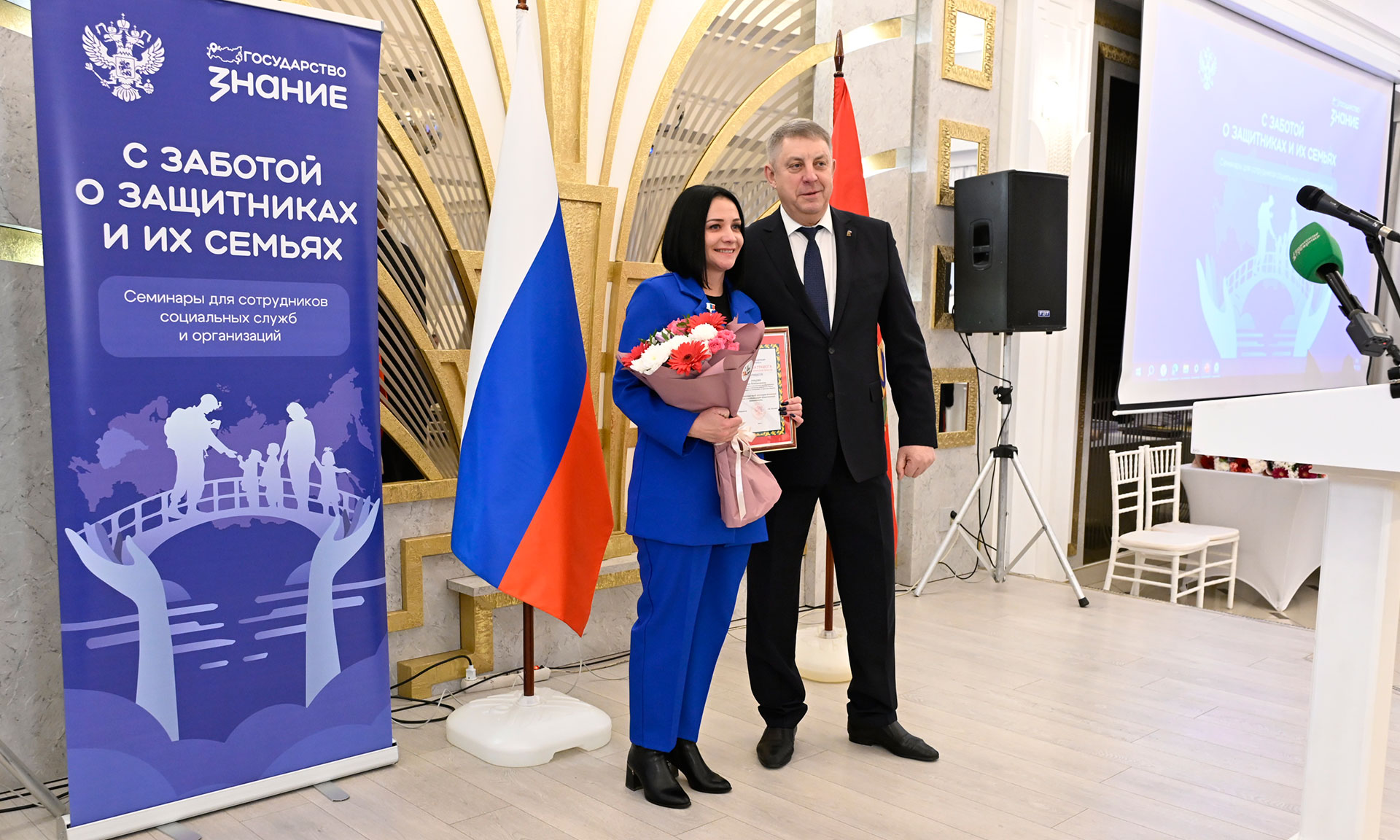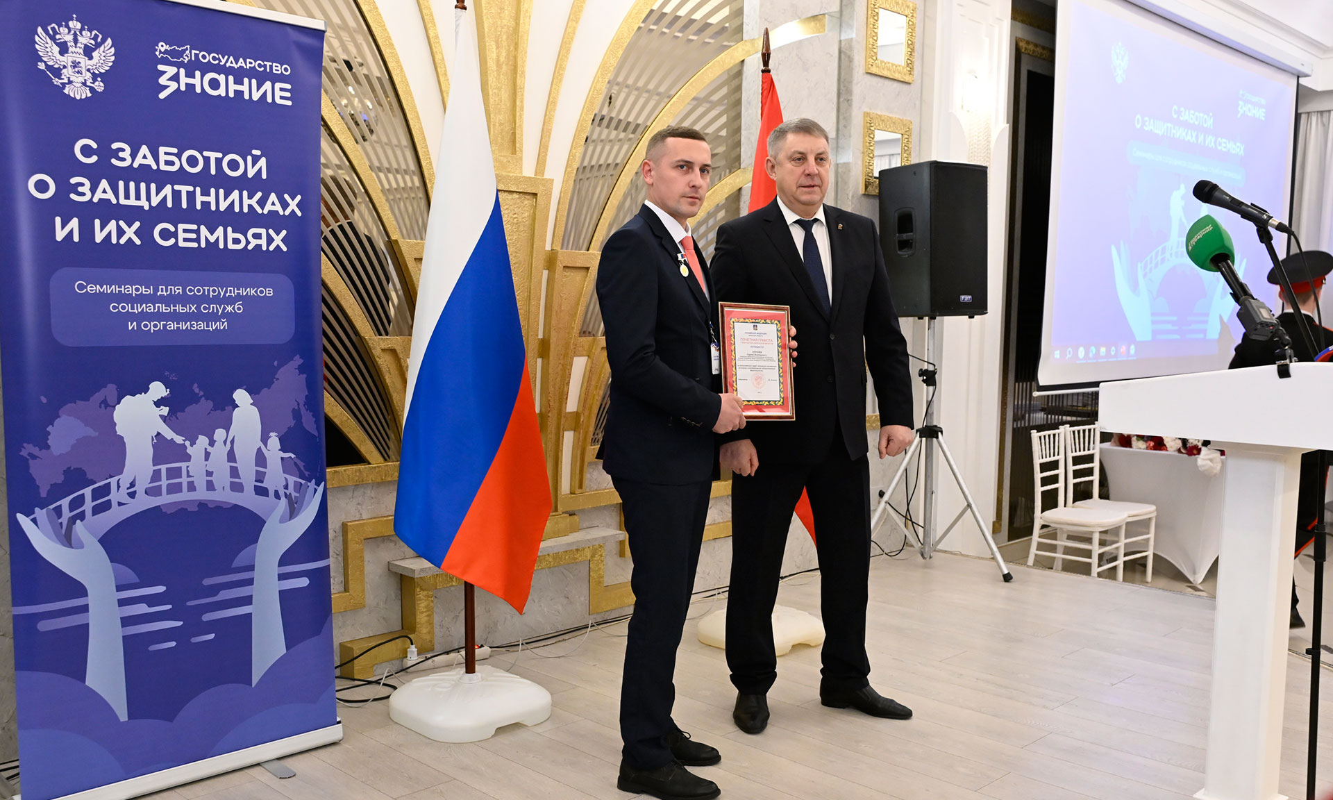 25 ноября состоялось торжественное открытие семинара-обучения работников государственных и муниципальных органов, учреждений и организаций, оказывающих меры поддержки участникам и ветеранам СВО в Брянской области. Семинар организован Аппаратом полномочного представителя Президента РФ в ЦФО совместно с Российским обществом «Знание».