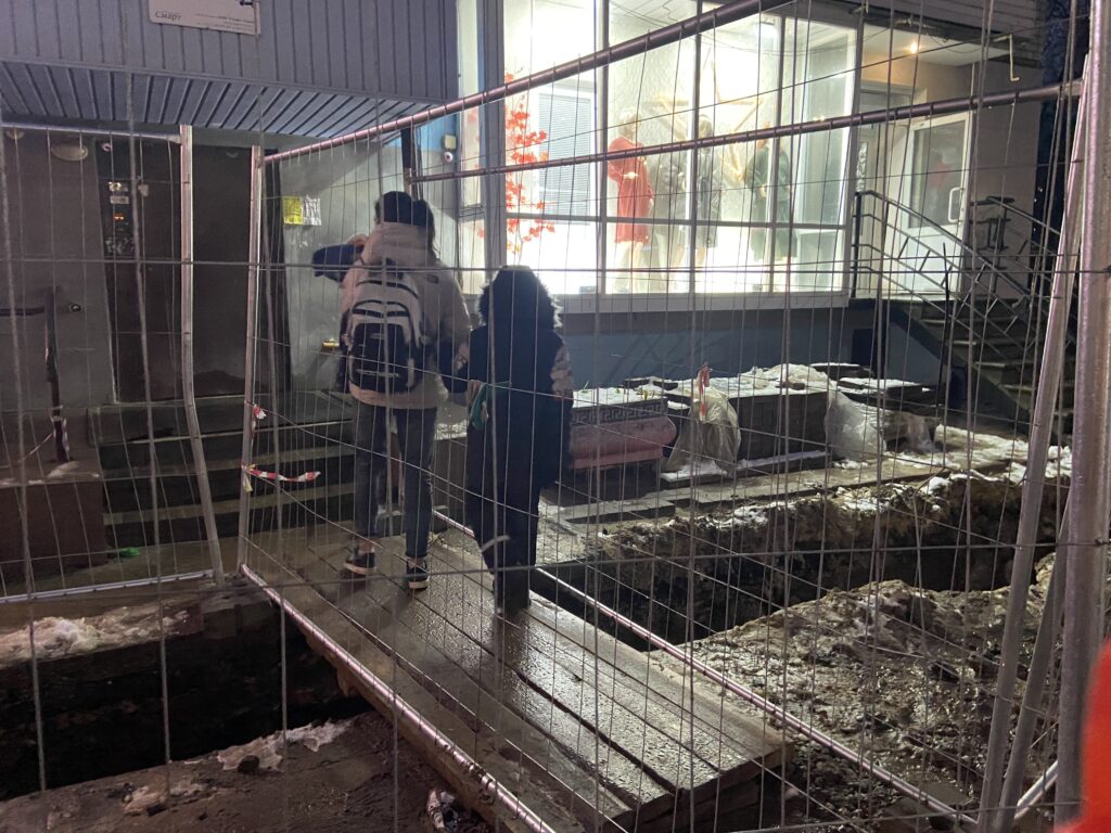 Вообще сразу довольно трудно понять, где заканчивается стройплощадка метрополитена и начинается стройплощадка дублёра. По сути они перетекают друг в друга плавно, будто музыкальные треки, сводимые умелым диджеем. Однако пристальное чтение табличек, часть из которых почему-то повешена информативной стороной вовнутрь стройплощадки, даёт понять, что территория сквера Петровского – это теперь часть стройплощадки метро.