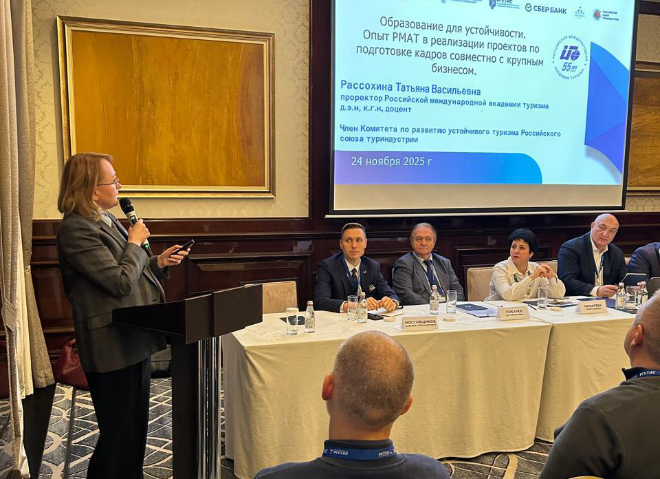 Проректор РМАТ, д.э.н. Рассохина Т.В. выступила с докладом «Образование для устойчивости. Опыт РМАТ в реализации проектов по подготовке кадров совместно с крупным бизнесом» на секции «Производительность труда, цифровая трансформация и устойчивость: лучшие решения в индустрии туризма и образовании».