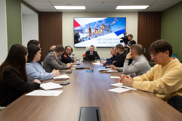 25 ноября в администрации областного центра состоялось заседание Совета по делам казачества при главе города Владимира. Оно прошло под председательством первого заместителя главы администрации города, заместителя председателя Совета по делам казачества Дениса Егорова.
