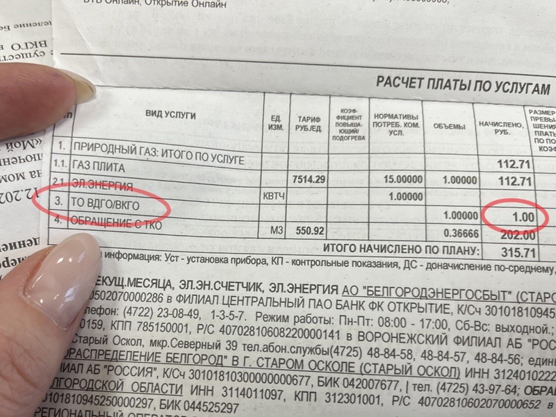 В квитанции ЕПД, которая ходит с июня 2025 года, появилась строка «ТО ВДГО/ВКГО». Оплата символической суммы в 1 рубль означает согласие абонента принять условия заявки (оферты) АО «Газпром газораспределение Белгород» на оказание услуг по техническому обслуживанию газового оборудования в квартире. Договор в таком случае заключится автоматически.