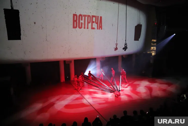 После официальной части торжества не закончились. Они переместились в Атриум Ельцин Центра, отгороженный от посторонних глаз, где состоялся премьерный показ спектакля-фантазии «Маяковский. Встреча». Для всех он станет доступен 26 и 27 ноября.