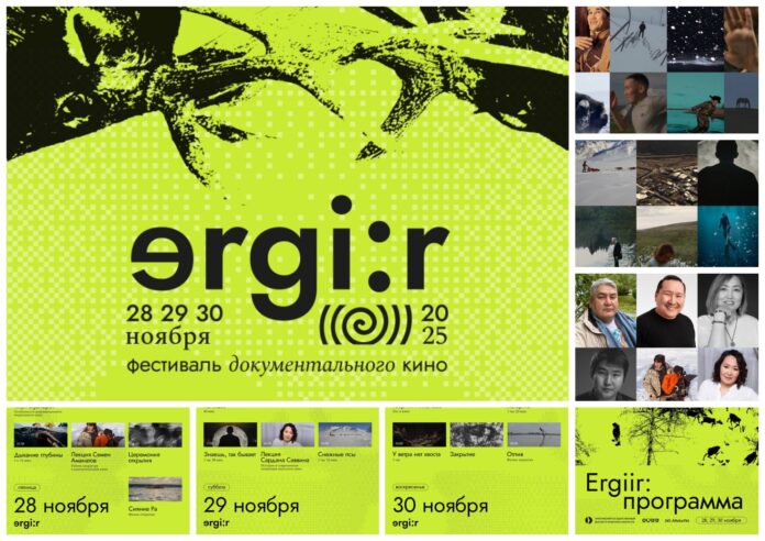 - Программа короткометражного кино «Эргиир» объединила 9 уникальных работ, среди которых «Любовь-морковь» (реж. Динара Абдрашитова), «Черная пурга» (реж. Мира Эркеннова), «Из кедра высеченный» (реж. Семен Колесников), «На кончиках пальцев» (реж. Ксения Нестерова) и другие.