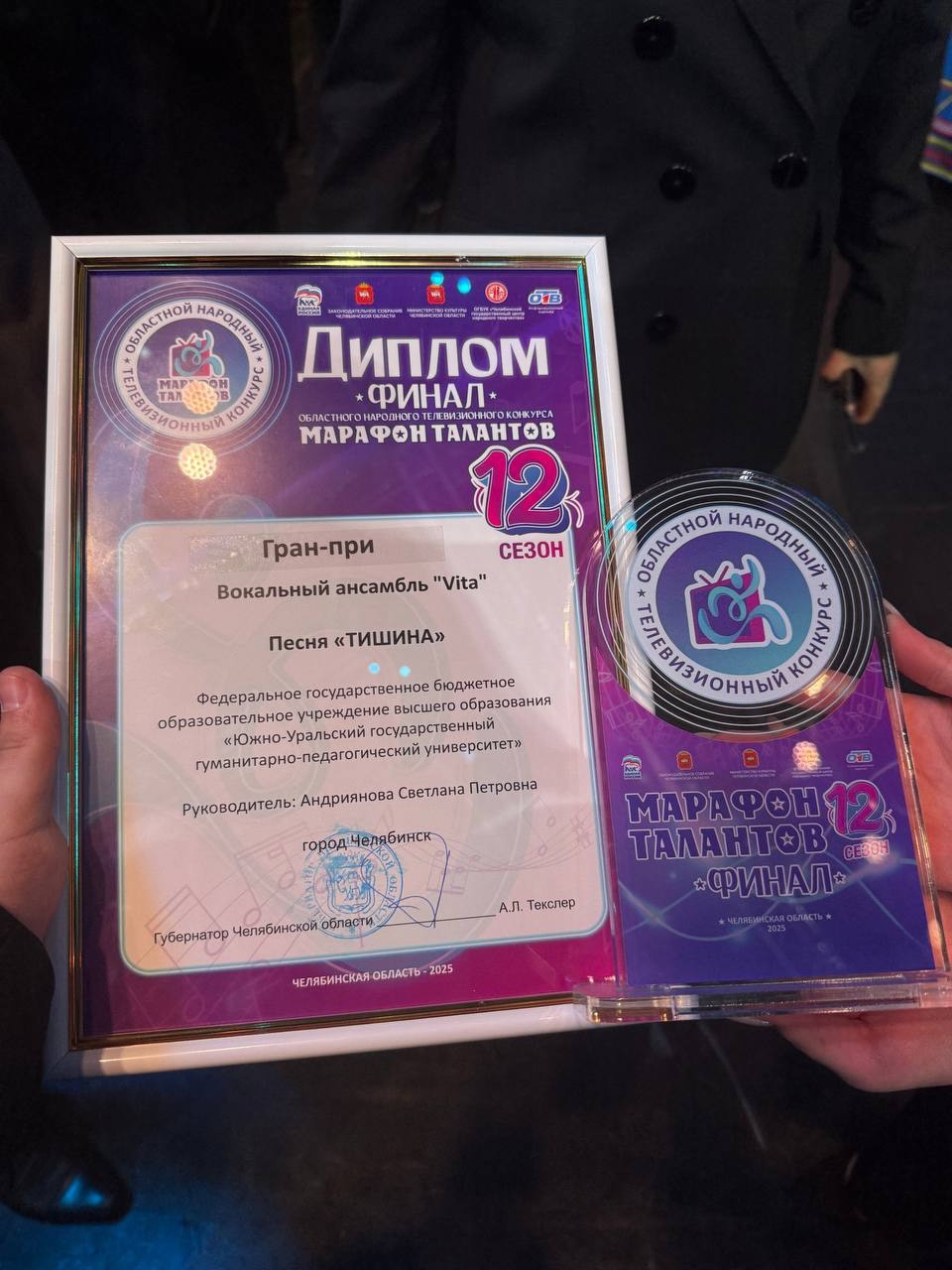 Вокальный ансамбль «Vita» института дополнительных творческих педагогических профессий ЮУрГГПУ (руководитель – Светлана Андриянова) получил Гран-при областного народного телевизионного конкурса «Марафон талантов».