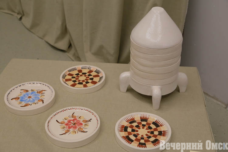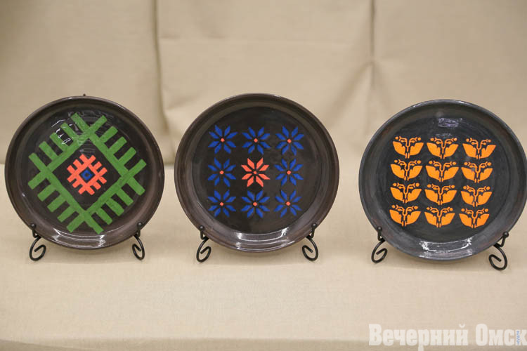 Валентина оказалась самым активным участником проекта: на выставке, помимо праздничного декора «Жили-были в Сибири», представлены еще две ее работы, в выполненные совместно с другими участниками. С пряничным мастером Юлией ТЕМНИК дизайнер разработала серию досок для печатных пряников «Село родное», с гончаром Натальей КРИГЕР – серию праздничных тарелок. В украшении обеих серий используются орнаменты знаменитых омских ковров из села Крестики – крестинские ковры Валентина называет неиссякаемым источником вдохновения для дизайнера. Вековые узоры одинаково органично смотрятся и на деревянной утвари для выпечки, и на современной посуде, которой впору сервировать столы в ресторане.