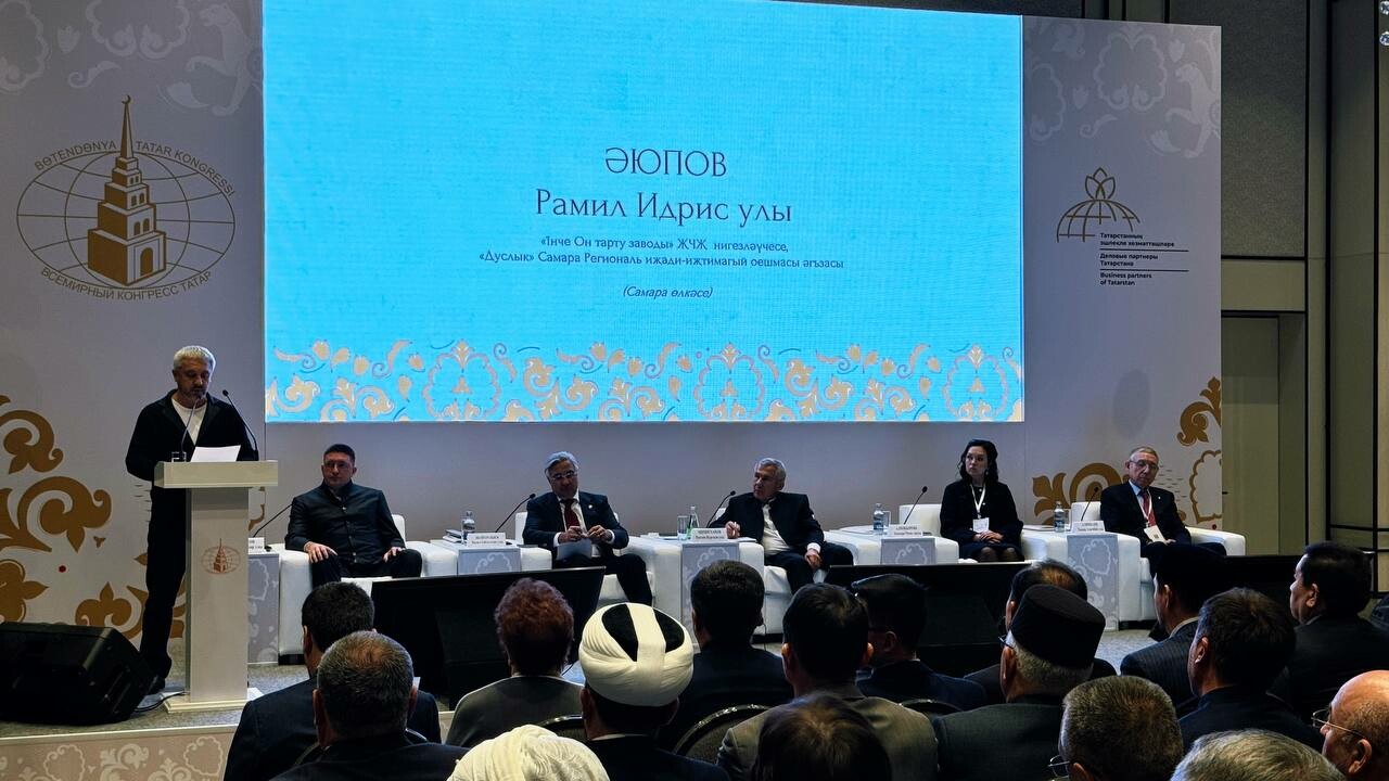 Продолжается пленарное заседание XVIII форума “Деловые партнеры Татарстана” в Kazan Palace By TASIGO с участием руководства Татарстана, представителей общественных объединений и бизнес-сообщества. Перед делегатами выступил член Самарской региональной творческо-общественной организации «Дуслык», основатель Общества с ограниченной ответственностью “Мукомольный завод № 1” Рамиль Идрисович Аюпов.