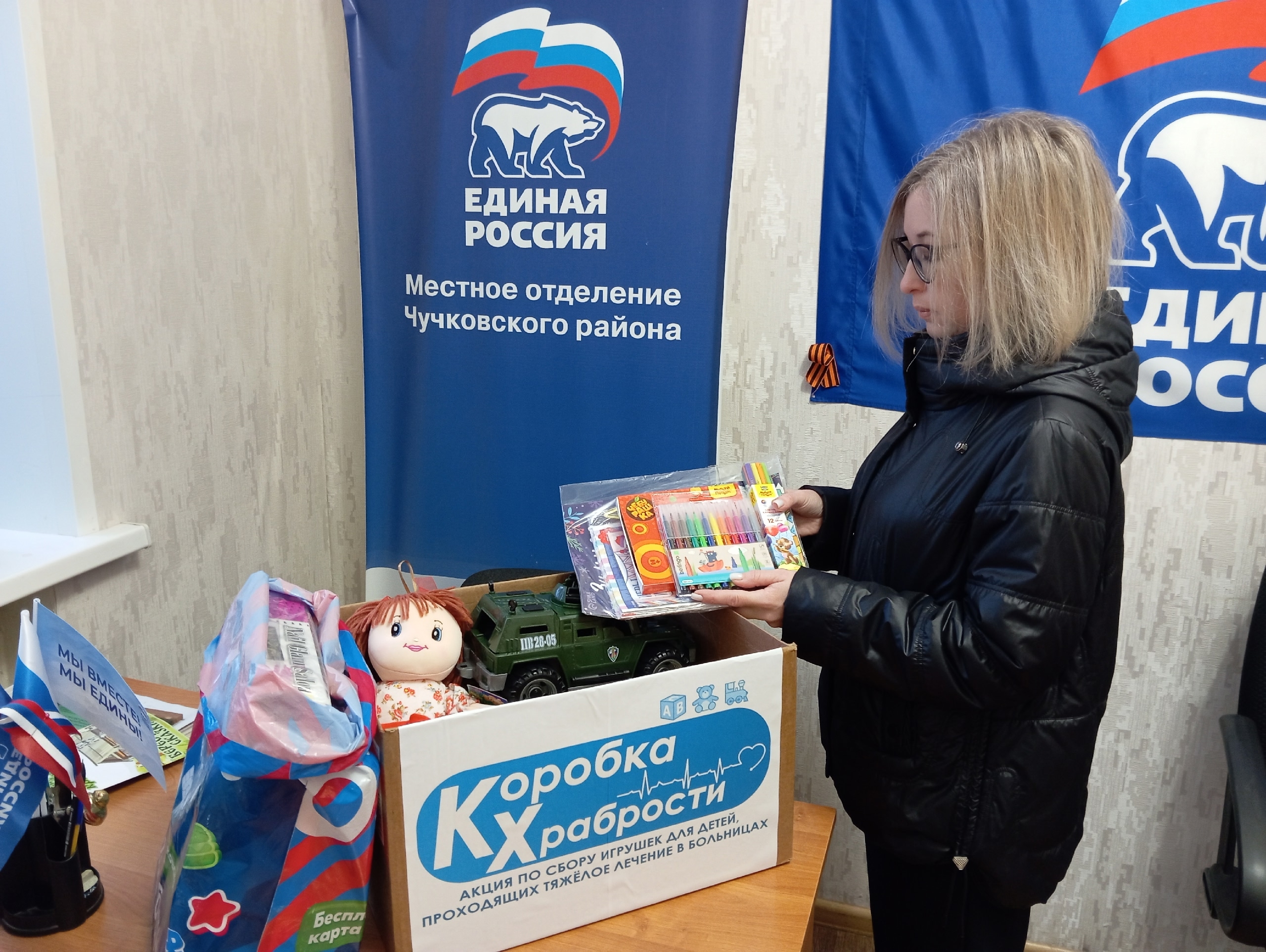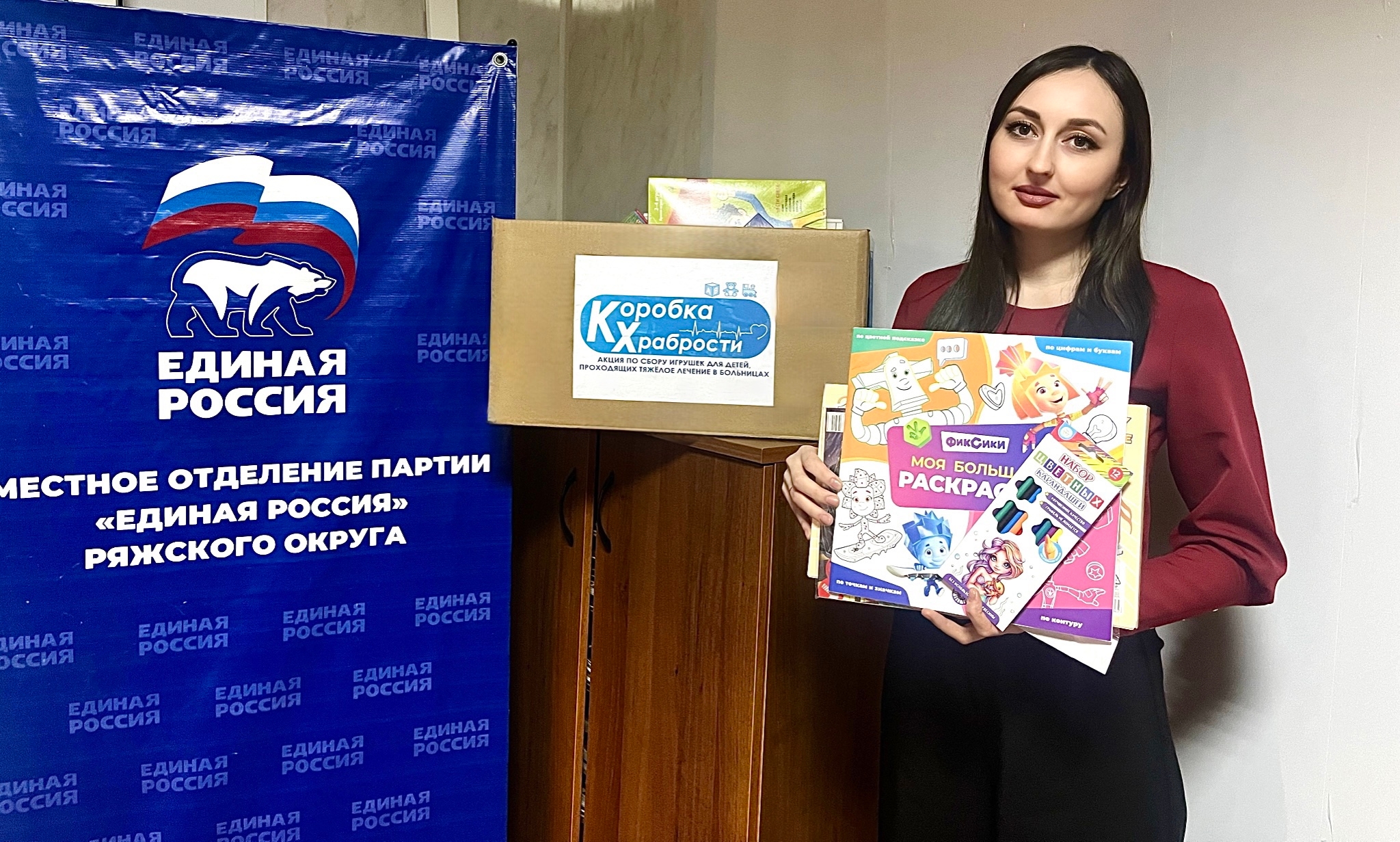 «Коробки храбрости» собирают в Ухоловском районе и Екимовском поселении Рязанского района. В Ряжском округе их пополнили исполнительный секретарь местного отделения партии Валентина Кодина вместе с руководителем МГЕР Анной Ларионовой, в Ермишинском районе — сотрудники редакции районной газеты «Ермишинский вестник», в Чучковском районе — коллектив Чучковской центральной библиотеки.