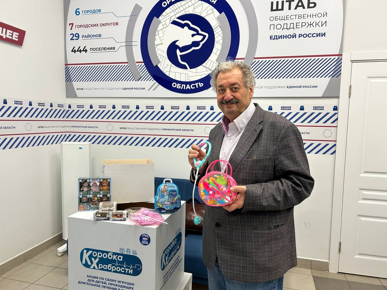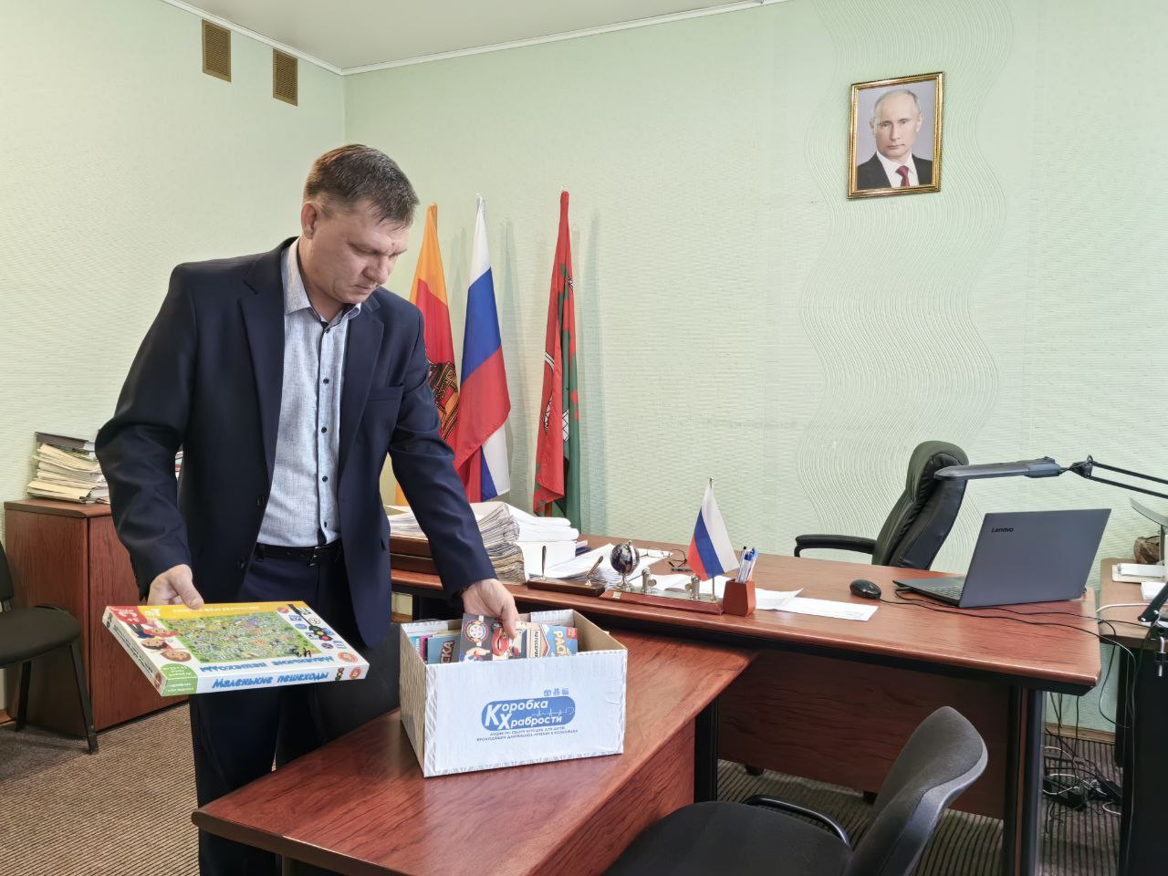 Подарки в «Коробку храбрости» положил секретарь местного отделения «Единой России», глава Тоцкого района Оренбургской области Владимир Ковешников.