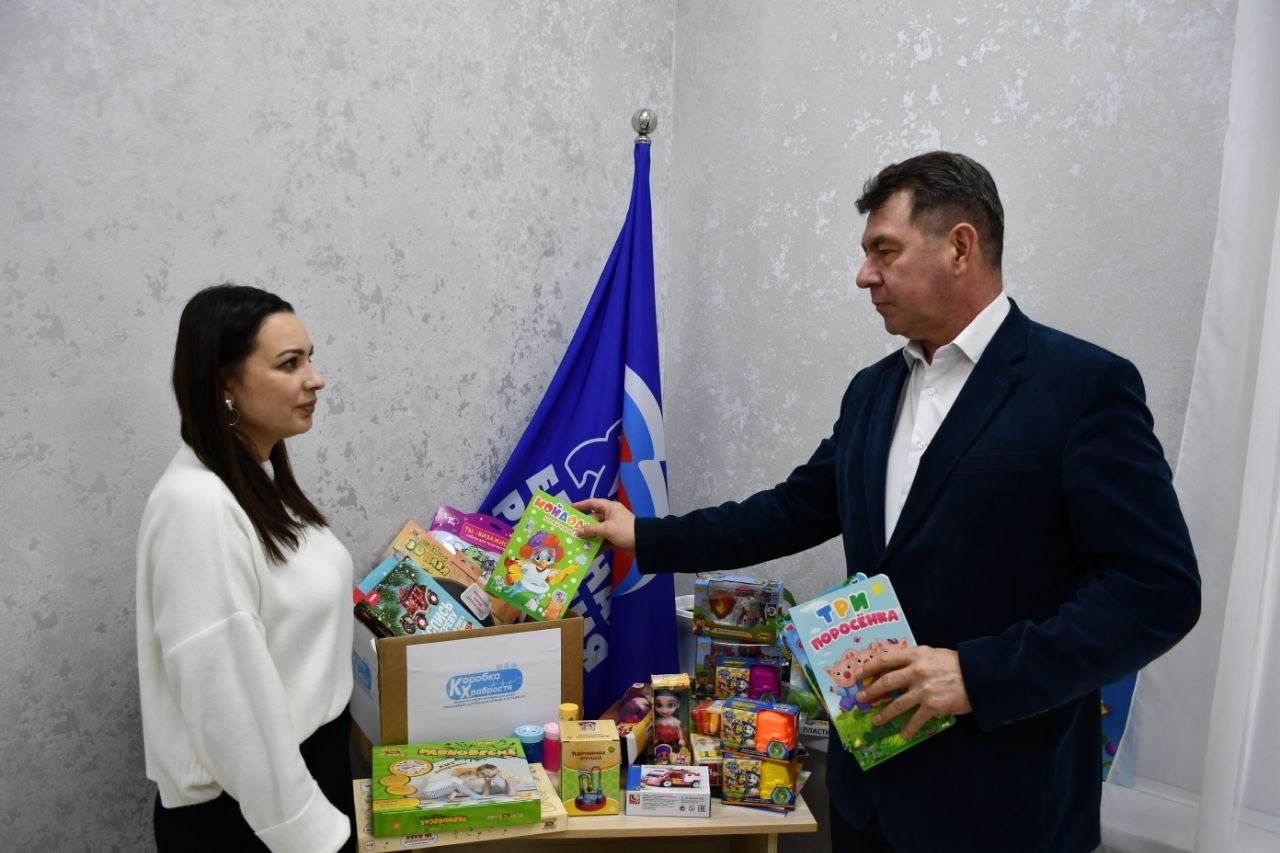 Депутаты Госдумы Владимир Иванов и Раиса Кармазина передали в регисполком «Единой России» в Ставрополе наборы для рисования, куклы, машинки, развивающие игры.