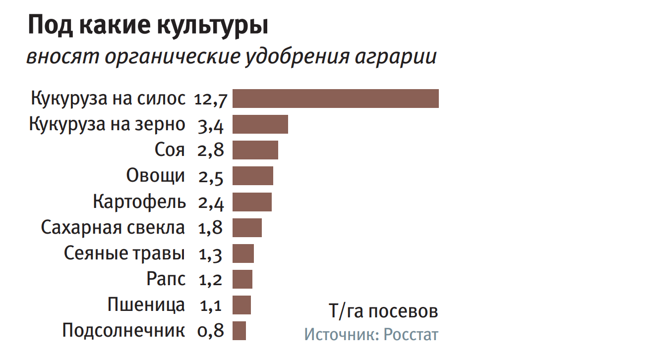 Между тем ученые-аграрии считают, что навоз и помет — ценный возобновляемый ресурс, который при грамотном использовании не только не вредит экологии, но, наоборот, восстанавливает ее. Это инвестиция в долгосрочное плодородие, которая окупится богатыми урожаями на долгие годы вперед. Согласно исследованиям, проведенным специалистами Российского государственного аграрного университета — МСХА им. К. А. Тимирязева, в Нечерноземье 20-30 т органических удобрений на гектар дают среднюю прибавку урожайности зерновых в 6-7 ц/га, картофеля — 60-70 ц/га, силосных культур — 150-200 ц/га.