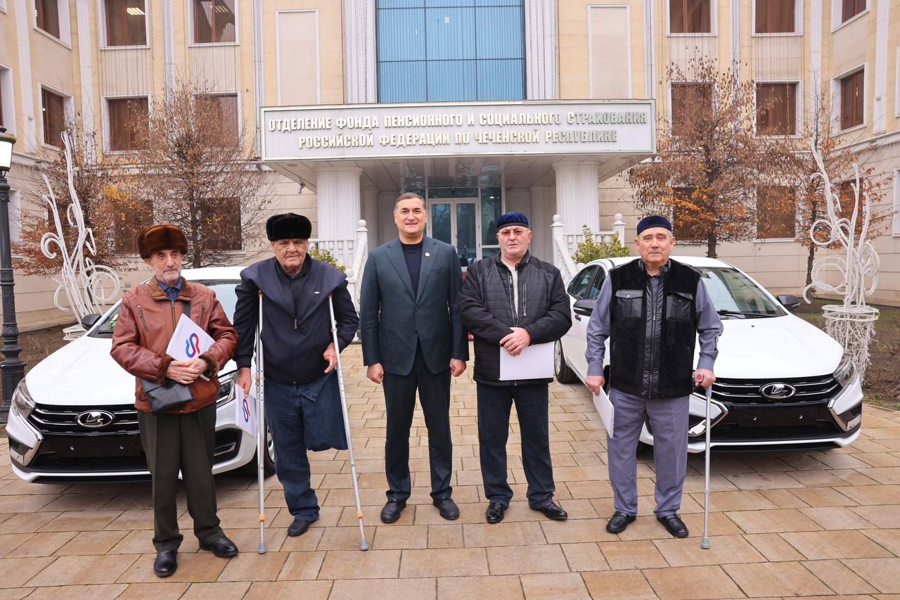 Ключи от четырех новых транспортных средств «Лада Веста», приобретенных за счет средств Социального фонда, жителям вручил управляющий Отделением СФР по Чеченской Республике Мохмад-Эми Ахмадов.