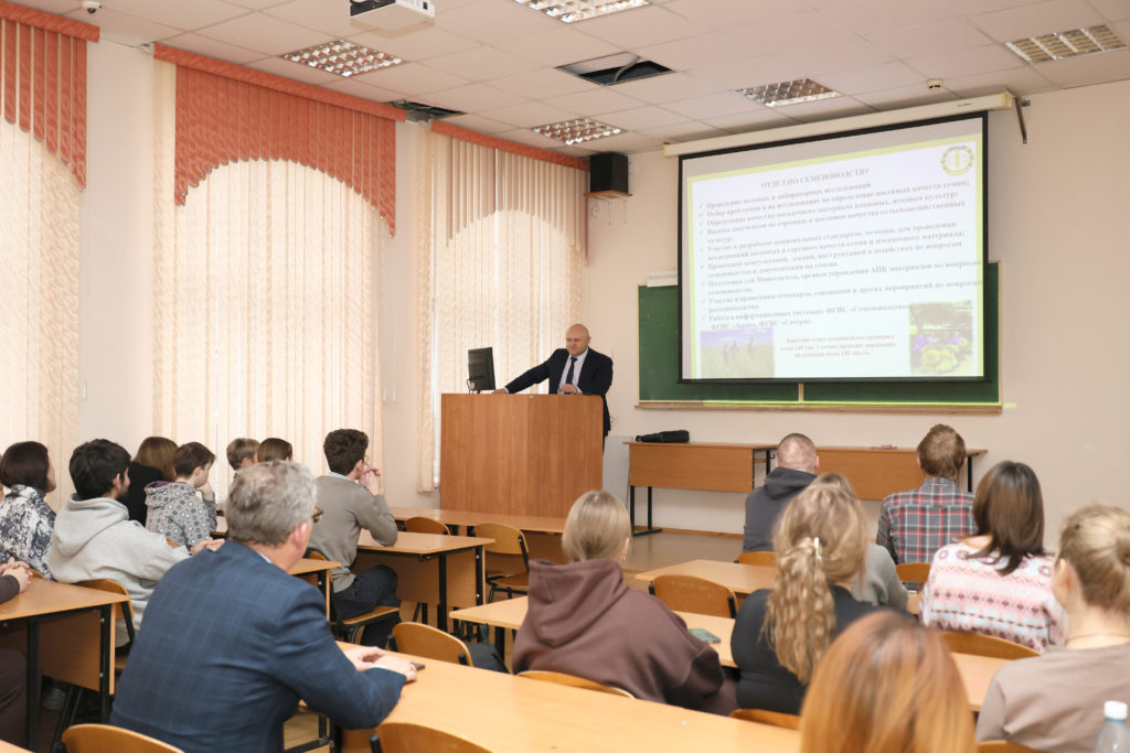 В Вятском ГАТУ прошла встреча студентов с Алексеем Мазуниным, выпускником университета и руководителем филиала ФГБУ «Россельхозцентр» по Кировской области и Республике Коми.Он рассказал о структуре филиала и задачах каждого отдела.