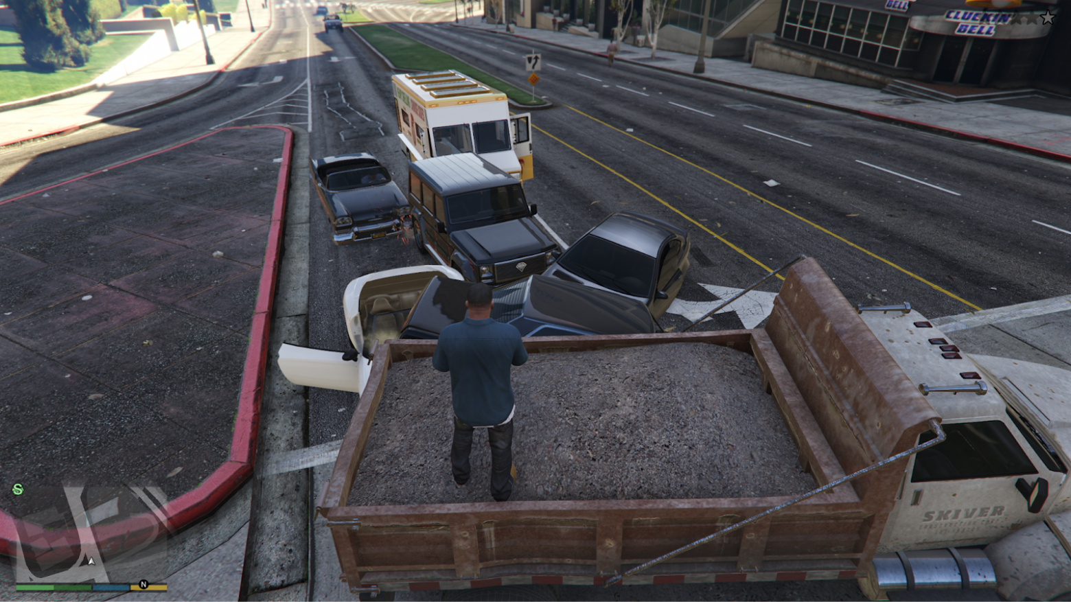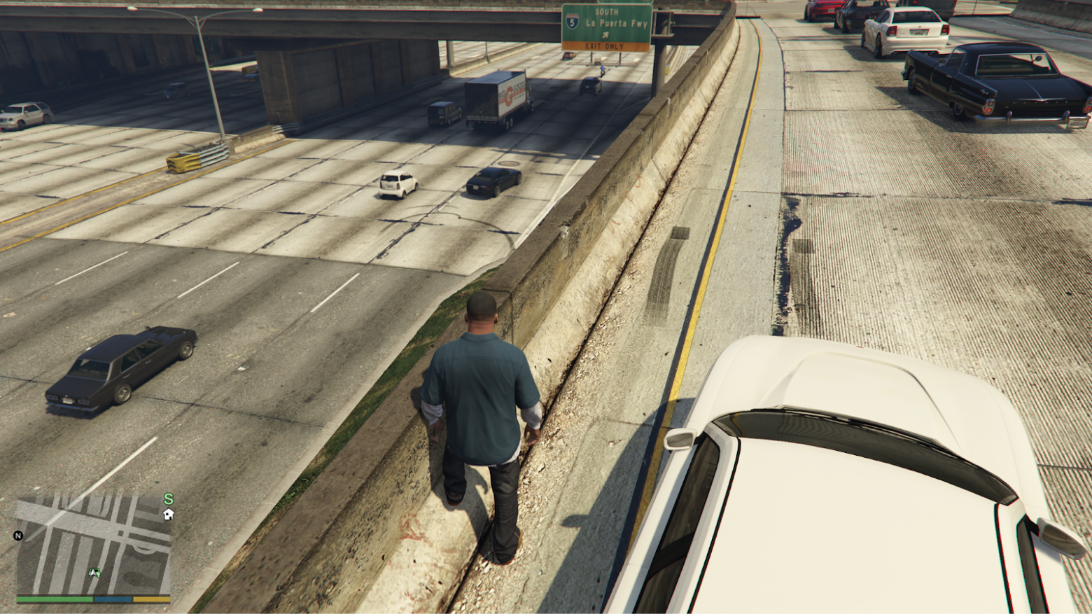 В качестве наблюдательных позиций я выбрал несколько локаций в Лос-Сантосе. Специально подобрал участки с интенсивным движением и перекрестками. Занимаем удобную позицию и начинаем наблюдать. И знаете что? Несколько часов подсматриваний за ботами привели меня к интересным выводам о том, на что я трачу жизнь.