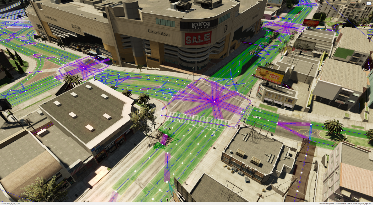 Так вот, упомянутое выше обсуждение хоть и не связано именно с «пятеркой» (GTA V и GTA Online), но в нем упоминаются «traffic nodes». Ага, опять какие-то узлы. Не те ли, о которых говорил Оббе Вермей? Эти узлы — часть внутриигровой дорожной сети и от них зависит поведение трафика. В целом благодаря этим узлам NPC ездят именно по дорогам, которые, как и светофоры, являются лишь декорацией для геймеров.