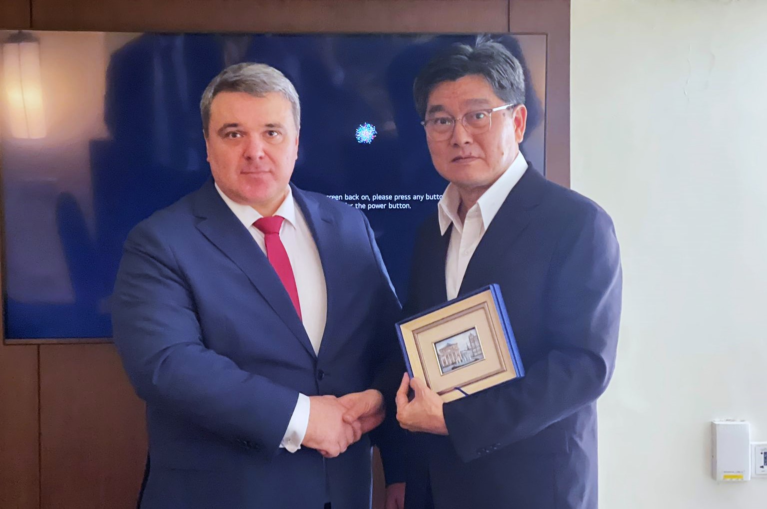 Во второй день Форума, 27 ноября, состоялась встреча вице-президента ТПП РФ Ильи Зубкова с послом Королевства Таиланд в Российской Федерации Сасиватом Вонгсинсаватом и председателем Цифрового совета Таиланда М.Р. Нонгкран Чомпунут.