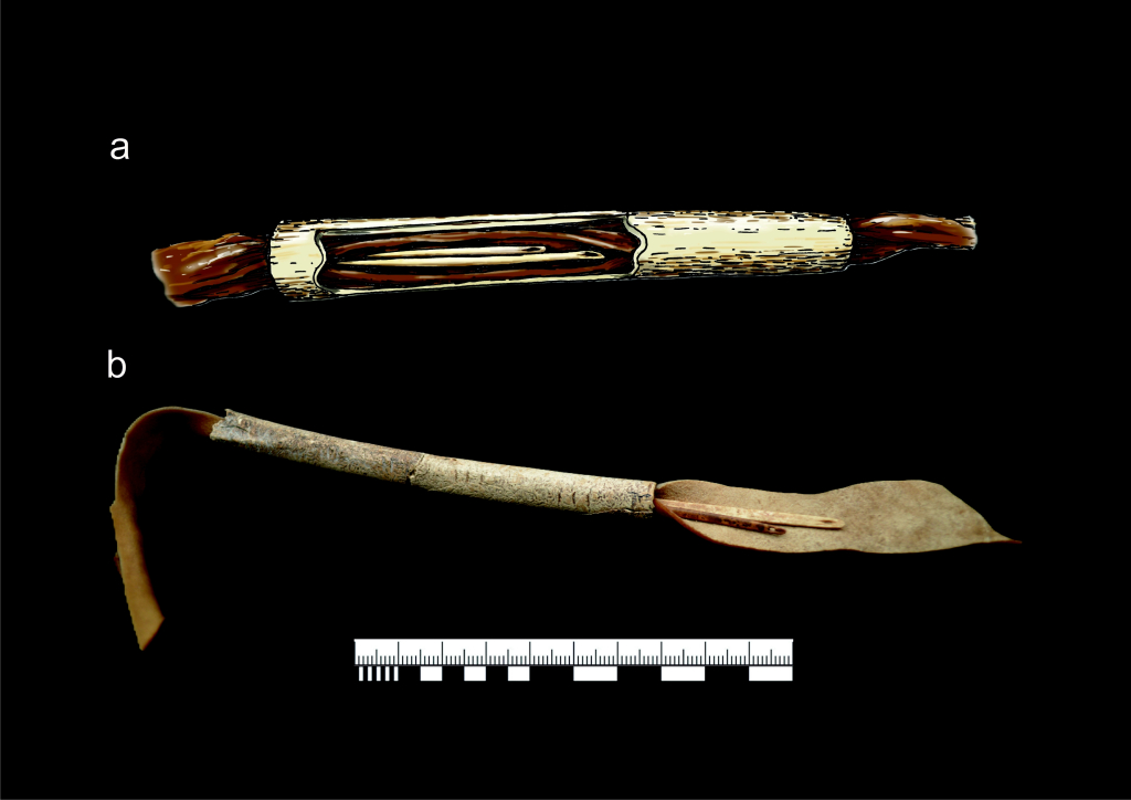 Реконструкция способа ношения неолитических костяных игольников. Источник: Института археологии и этнографии СО РАН