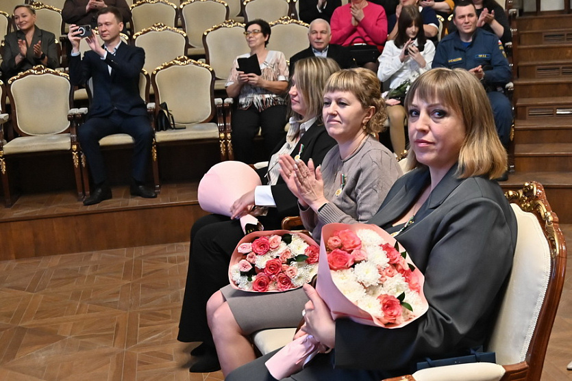Церемония вручения таких наград — уже третья в 2025 году. Среди героинь дня — 12 женщин с пятью детьми и три женщины с шестью детьми. Самая молодая мама приехала из Искитима, ей 33 года.