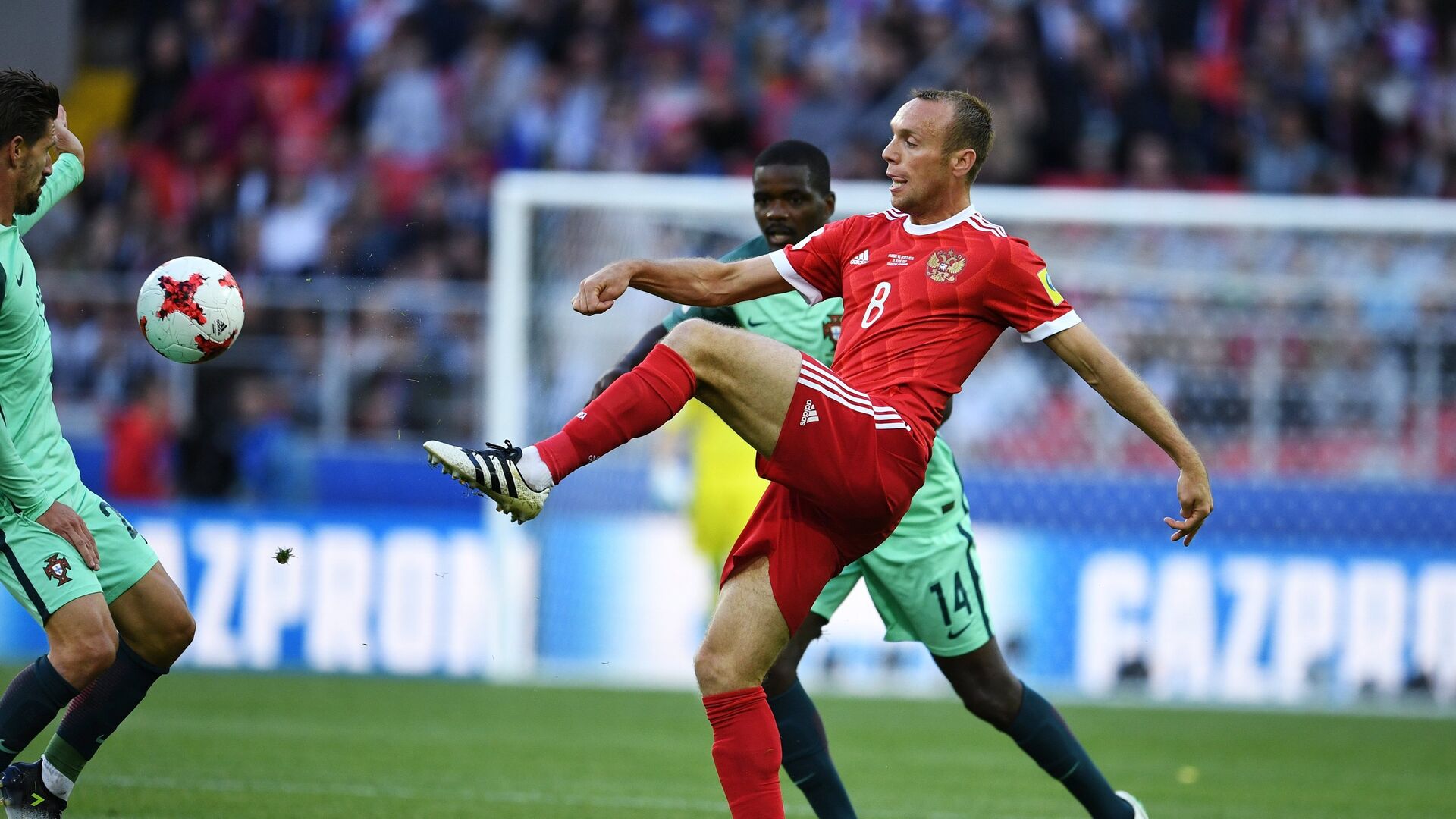 Полузащитник сборной России Денис Глушаков (на первом плане). Архивное фото