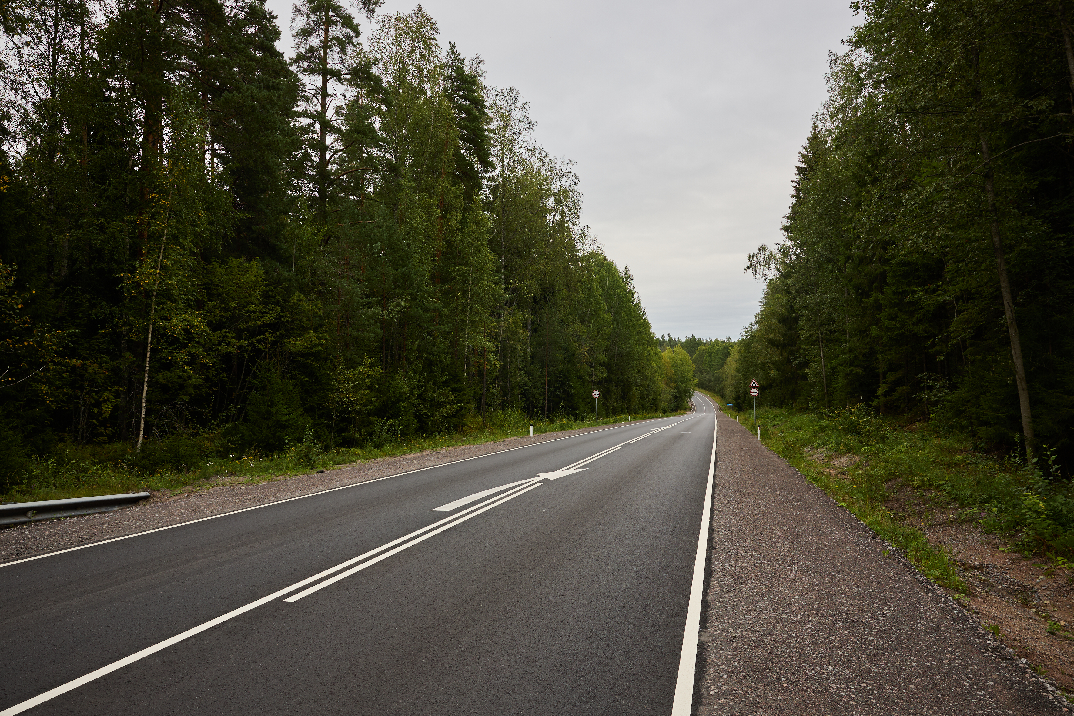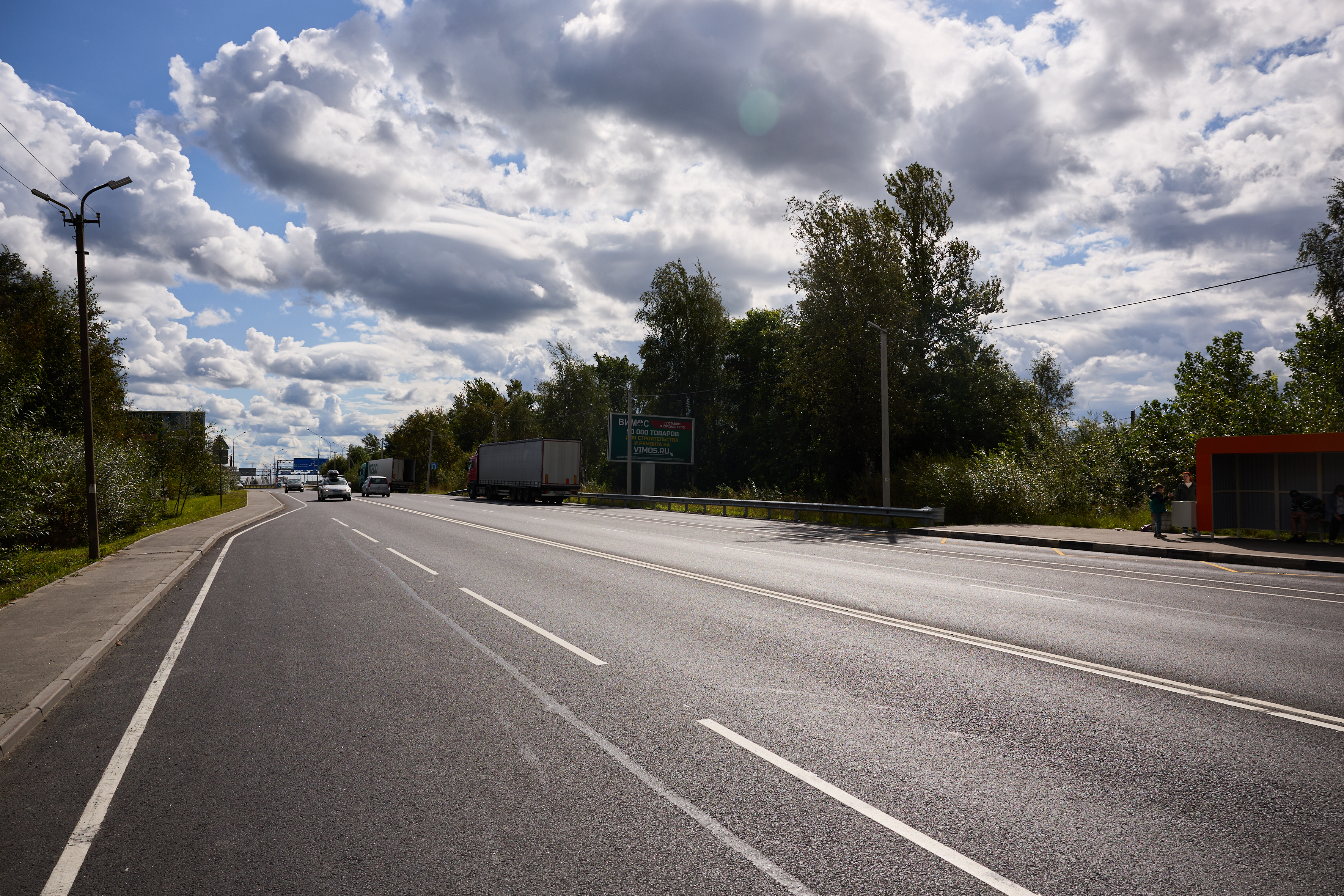 Дорожники обновили два участка: от поселка Возрождение до моста через реку Вуоксу и от моста в сторону развилки на Каменногорск. Их общая протяженность составила 14,3 км.