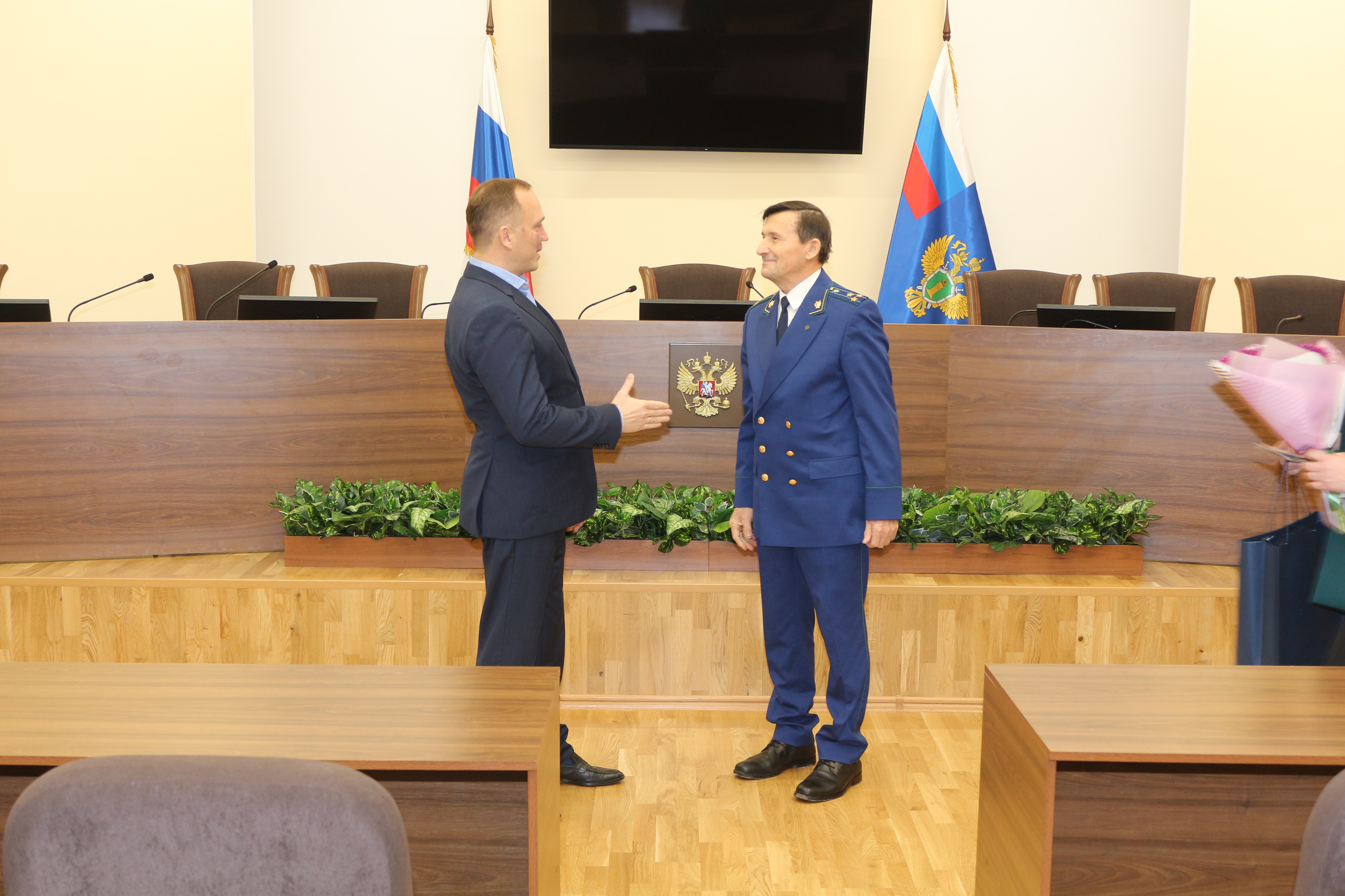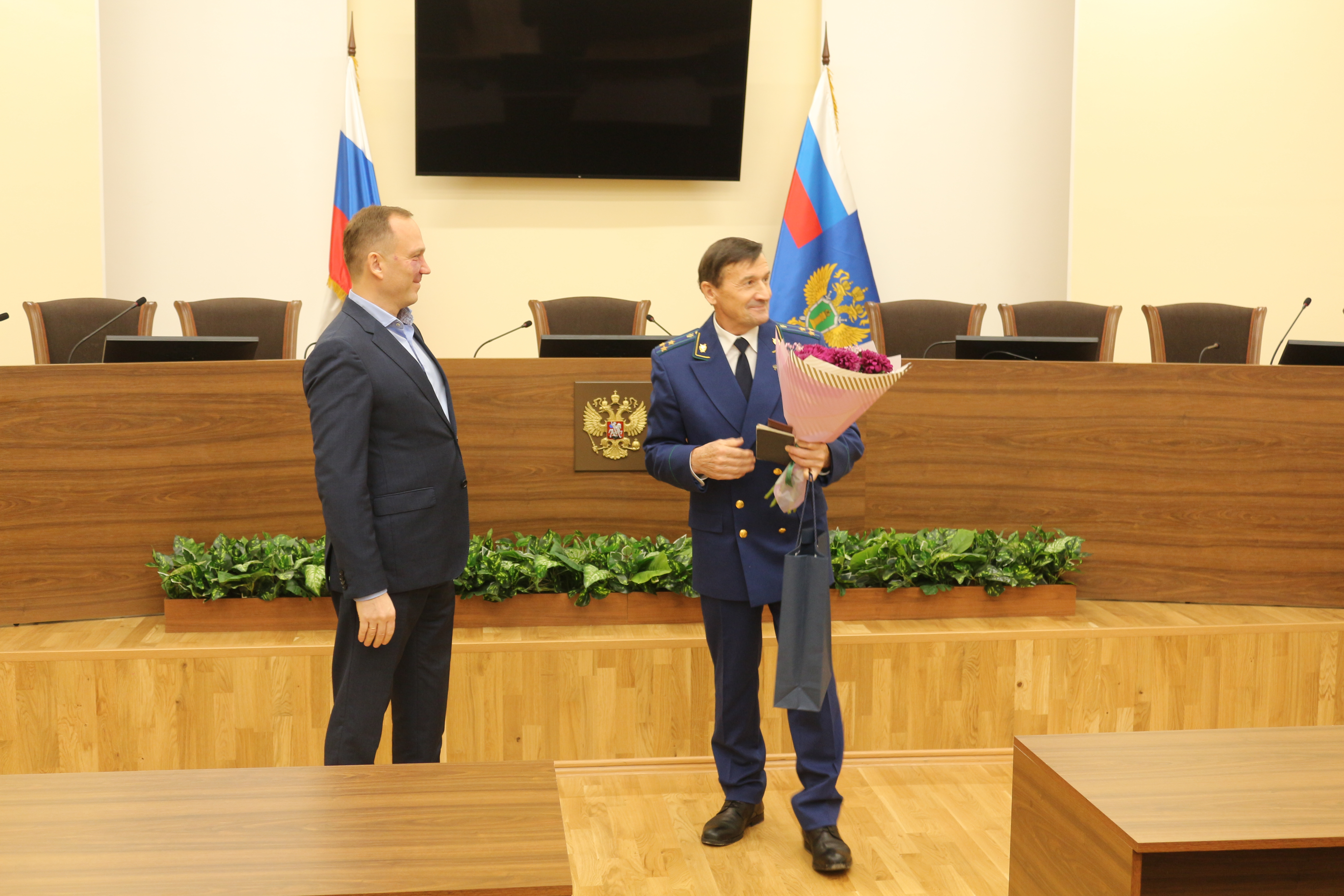 Прокурор области Иван Владимирович Грибов в торжественной обстановке от всей души поздравил юбиляра, пожелав крепкого здоровья, бодрости духа и оптимизма.