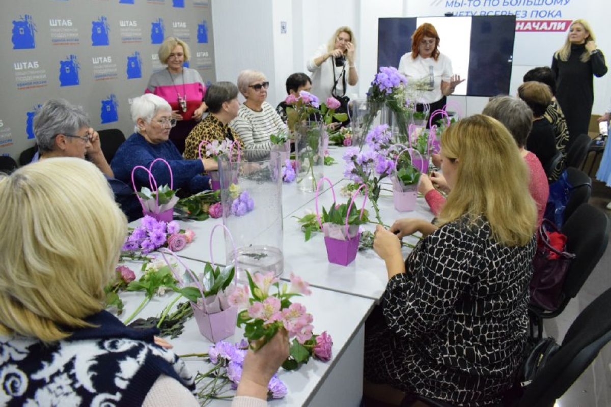 В штабе общественной поддержки «Единой России» в Саратове для мам участников СВО устроили праздник «Спасибо, мама!». Перед гостями выступили творческие коллективы, а затем состоялся мастер-класс по флористике.
